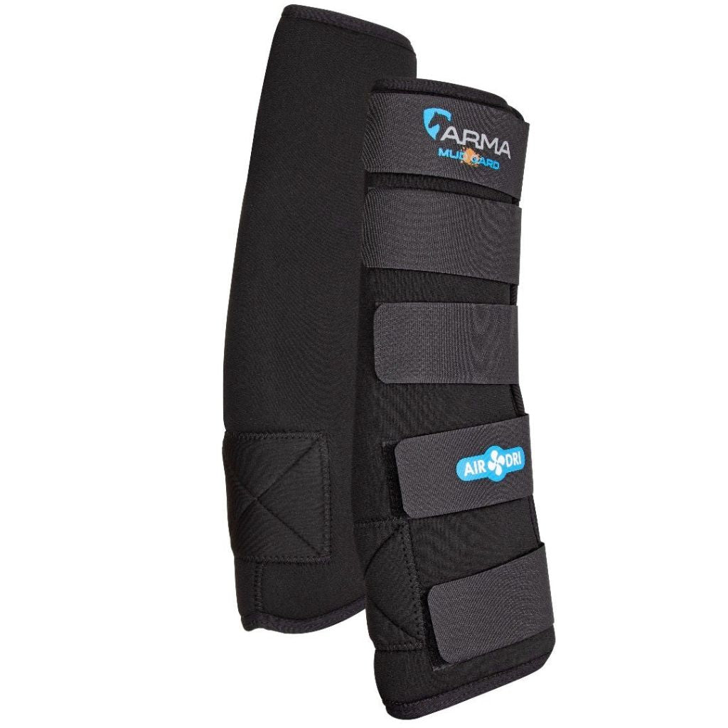 ARMA NX-MAX neoprene mud socks are designed to help prevent mud fever by keeping the legs mud free and to protect against injuries in the field. Providing full coverage of the lower leg and shaped out of soft, flexible shock absorbing neoprene which is pierced to allow airflow, helping to prevent over-heating. Suitable for front and hind legs. Fastened with touch close straps. Set of 2.