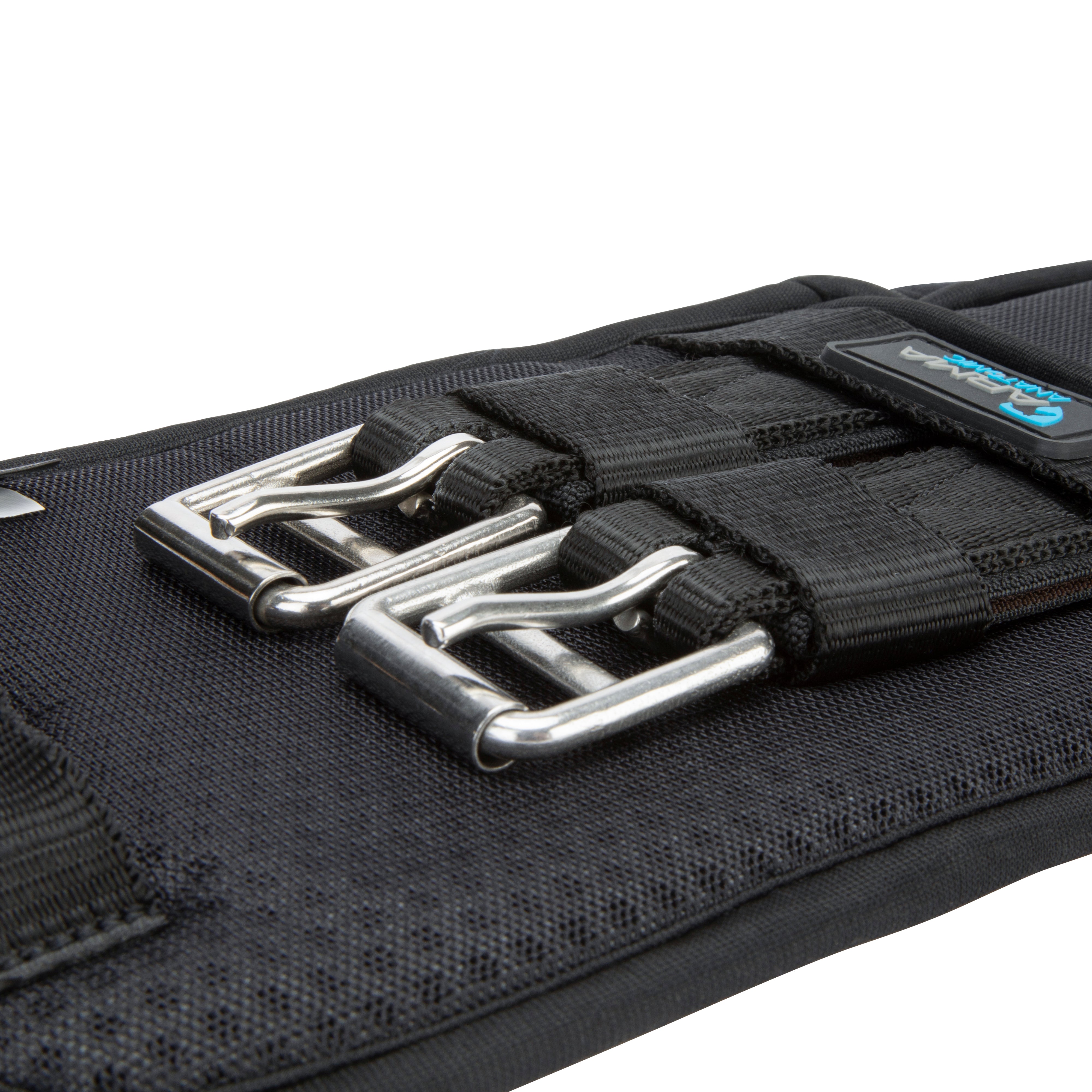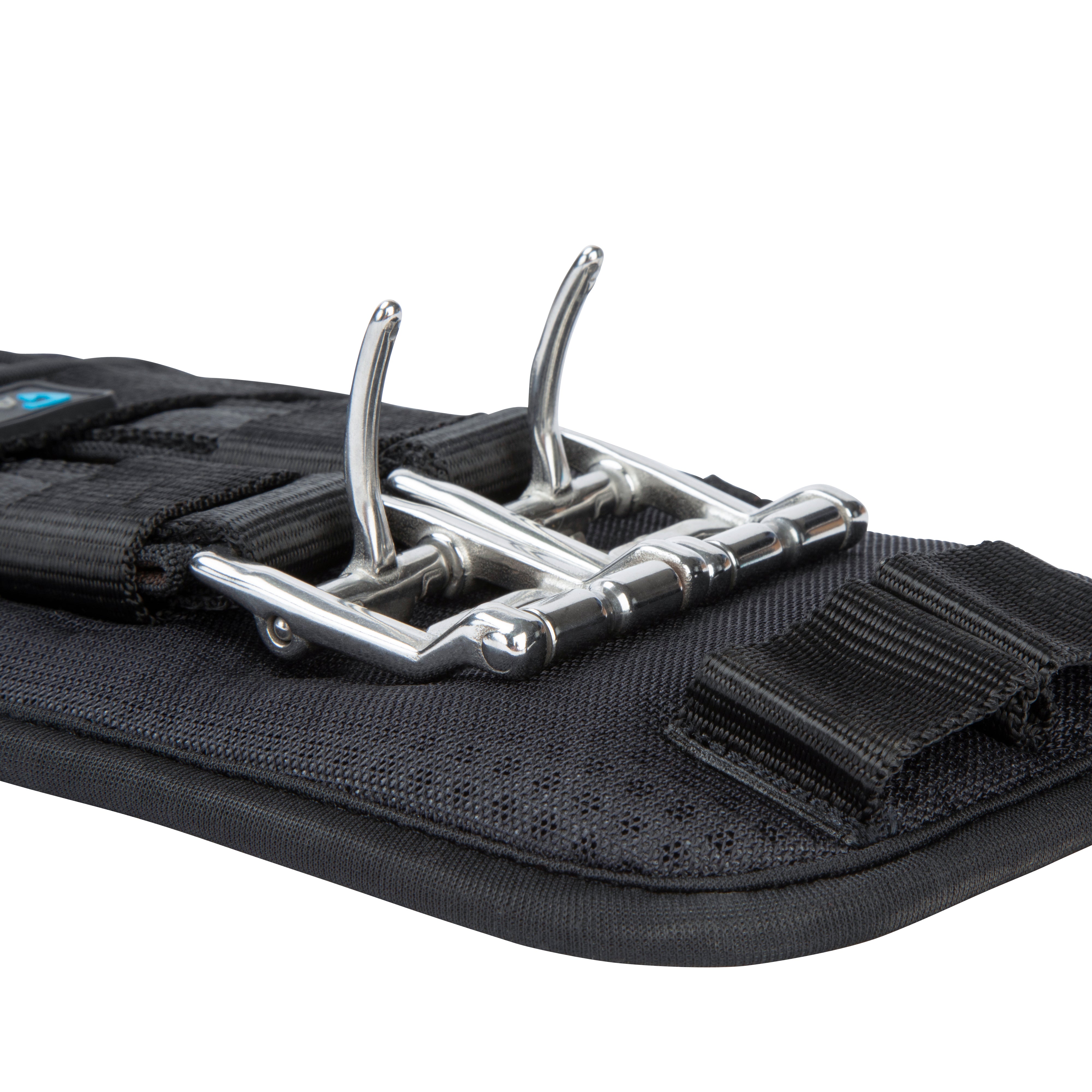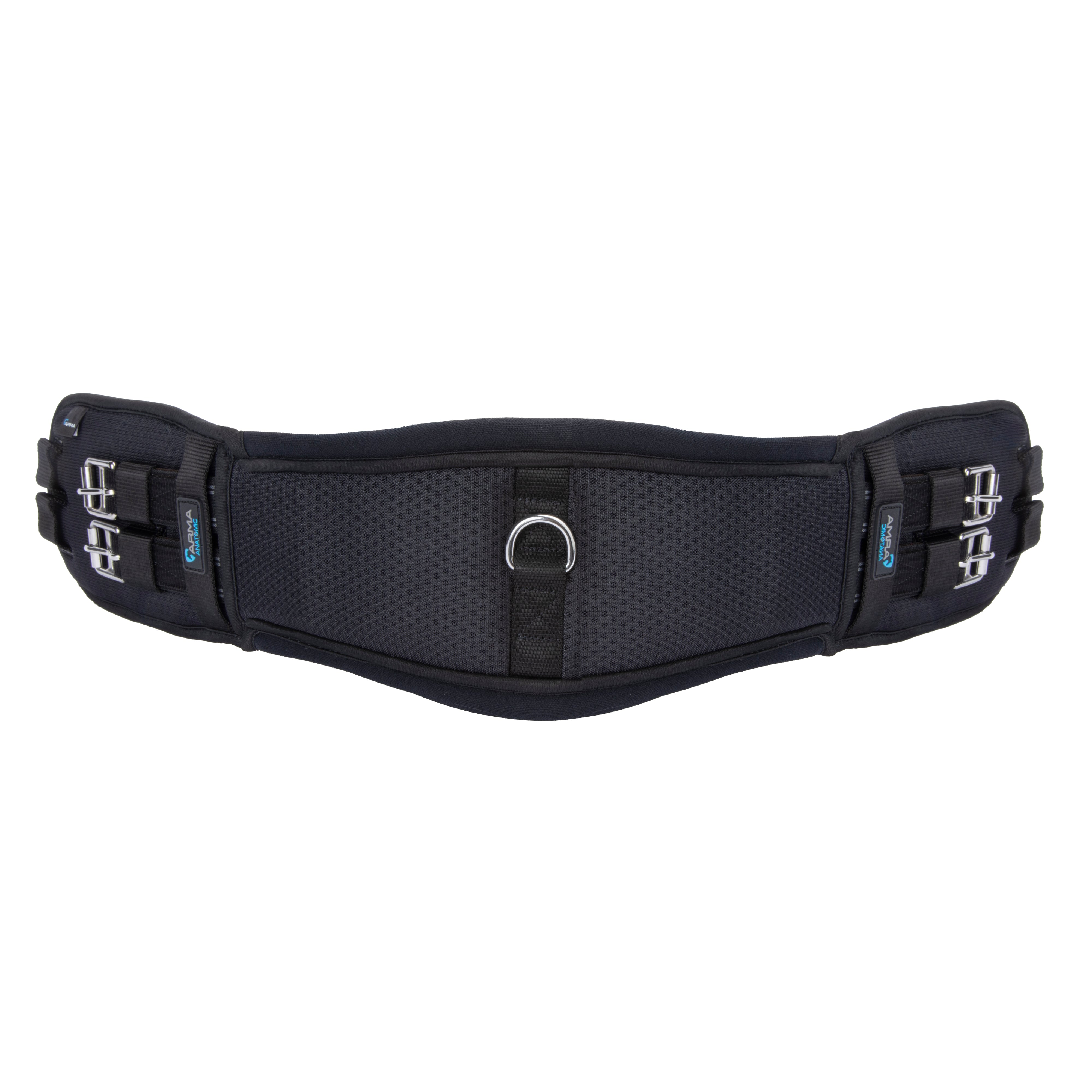 The ARMA Performance dressage girth is designed in carefully engineered fabrics to promote dryness and enhance comfort for the horse. Built around a non-stretch nylon web core for strength, a heat responsive memory foam lining moulds to the body's contours for a bespoke fit. Soft roll-away edges remove the risk of pinching and create a cushion effect. The outer girth features a 3D aerated surface to help bring air movement through to the underlayers, reducing moisture and heat build up. Contoured shaping supports the horse whilst allowing space behind the elbows for greater freedom of movement. Double layer pressure alleviating elastic inserts at both ends with curved self-closing loop bar roller buckles at one end, standard roller buckles at the other. A centre D-ring for martingale and breastplate attachment. Stainless steel fittings for long lasting performance.