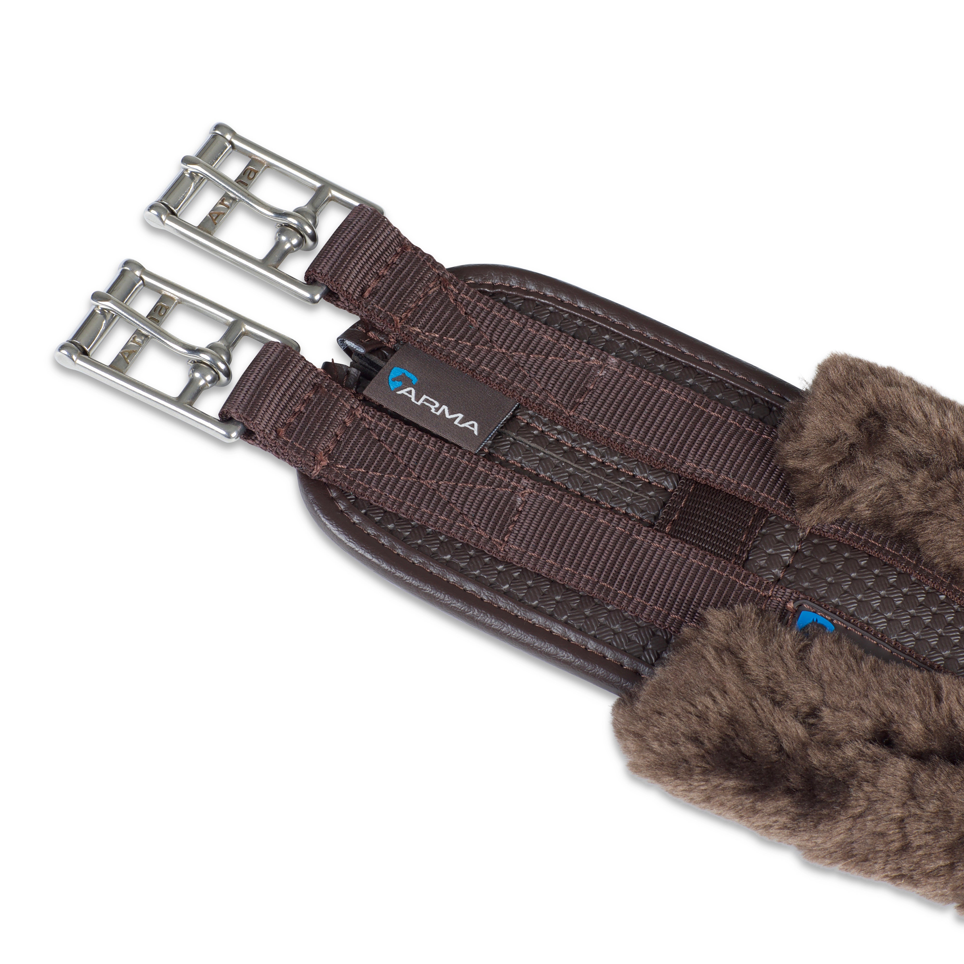 The ARMA SupaFleece contour girth offers high comfort in a supportive, unrestrictive girth. Deep Pro Comfort SupaFleece increases airflow, relieves pressure and controls moisture. Anatomic contour shaping provides unrestricted movement around the elbows and increased support under the belly. Flexible, stretch resistant and wipe clean backing, reinforced with non-stretch nylon webbing. Stainless steel roller buckles and fittings for long lasting performance.