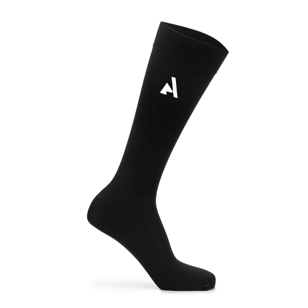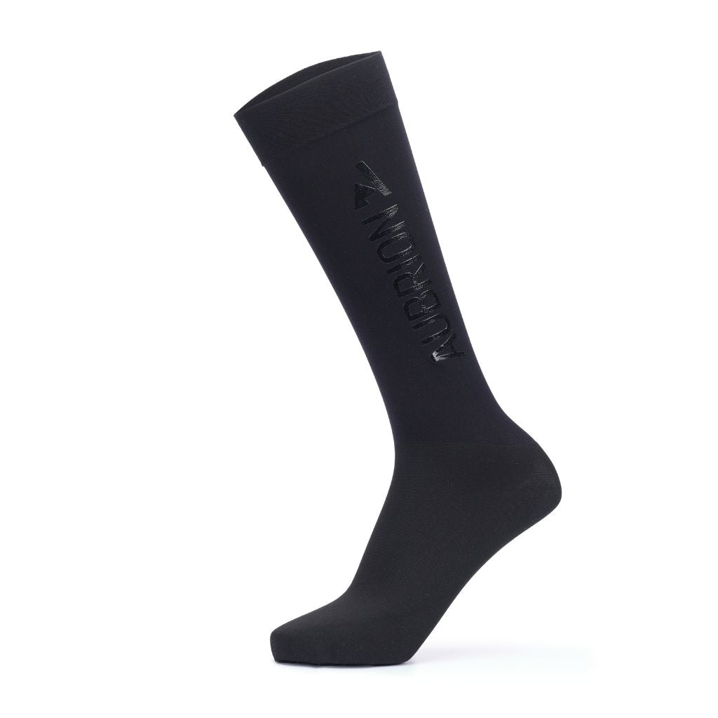 Heat releasing stretch knit gives the Aubrion React Performance Socks bring a light feel under long riding boots. Silicone grips assist with keeping the socks elevated. Further detail: knee length, sleek and smooth, quick dry, breathable, silicone boot grips, Aubrion React logos. One size (3.5 - 8).