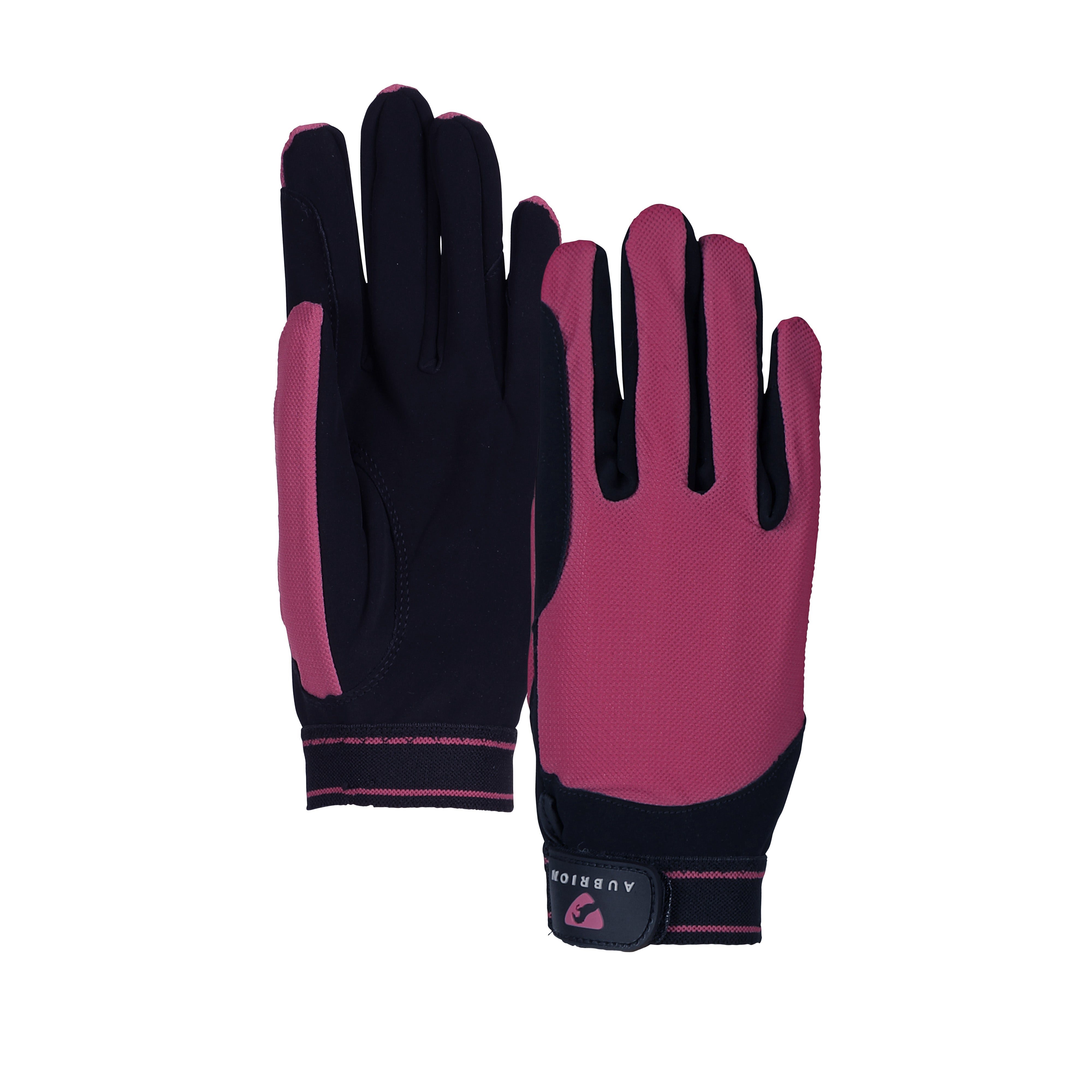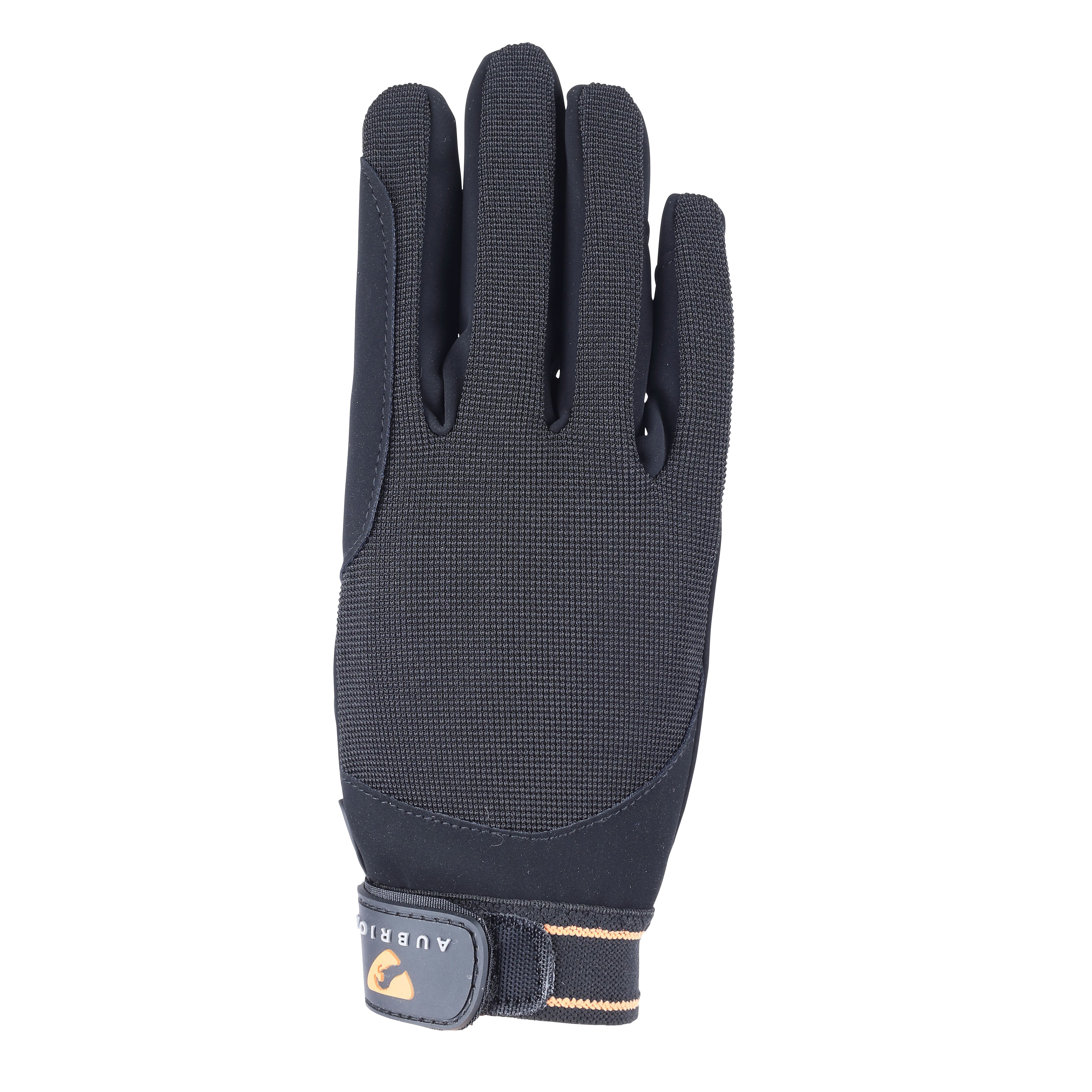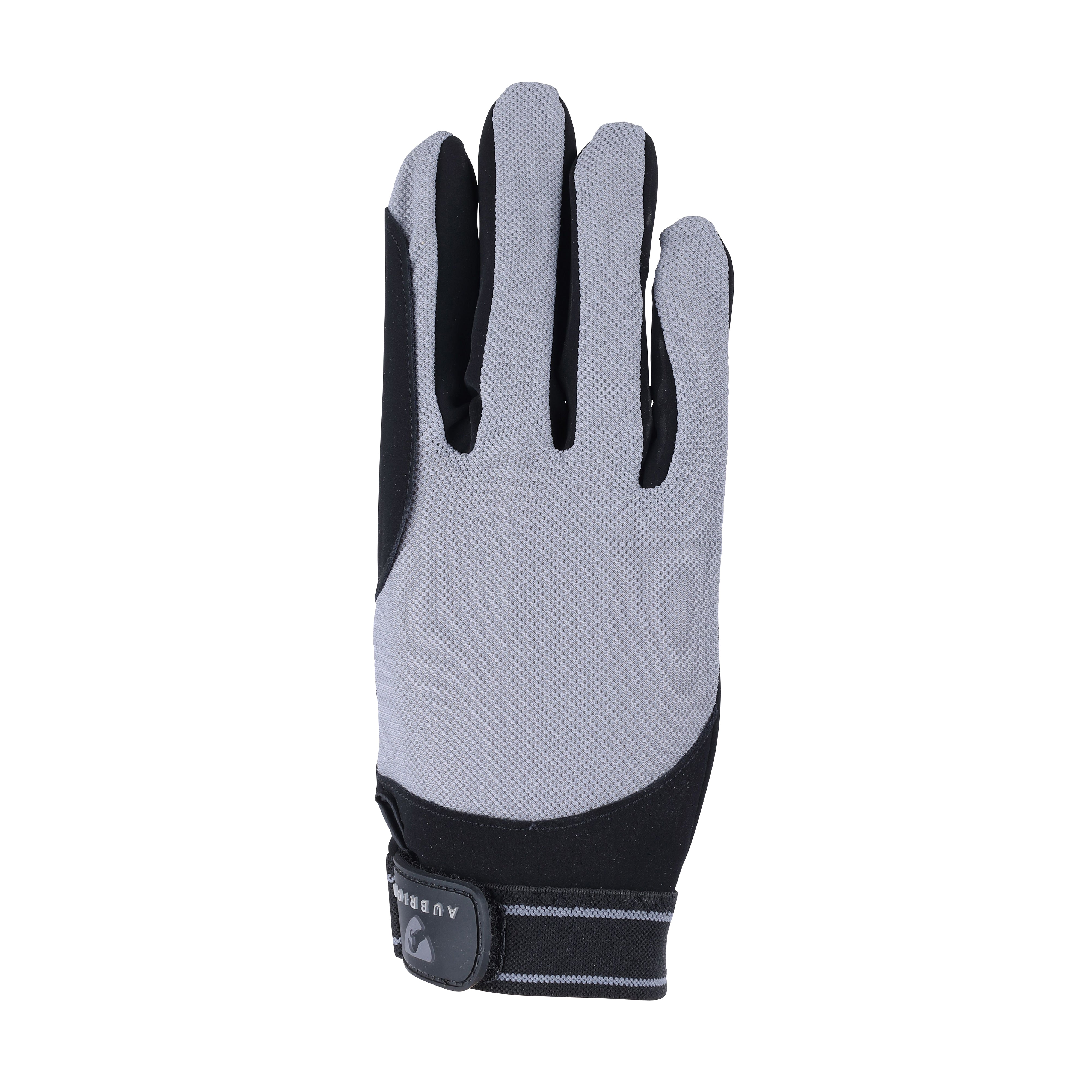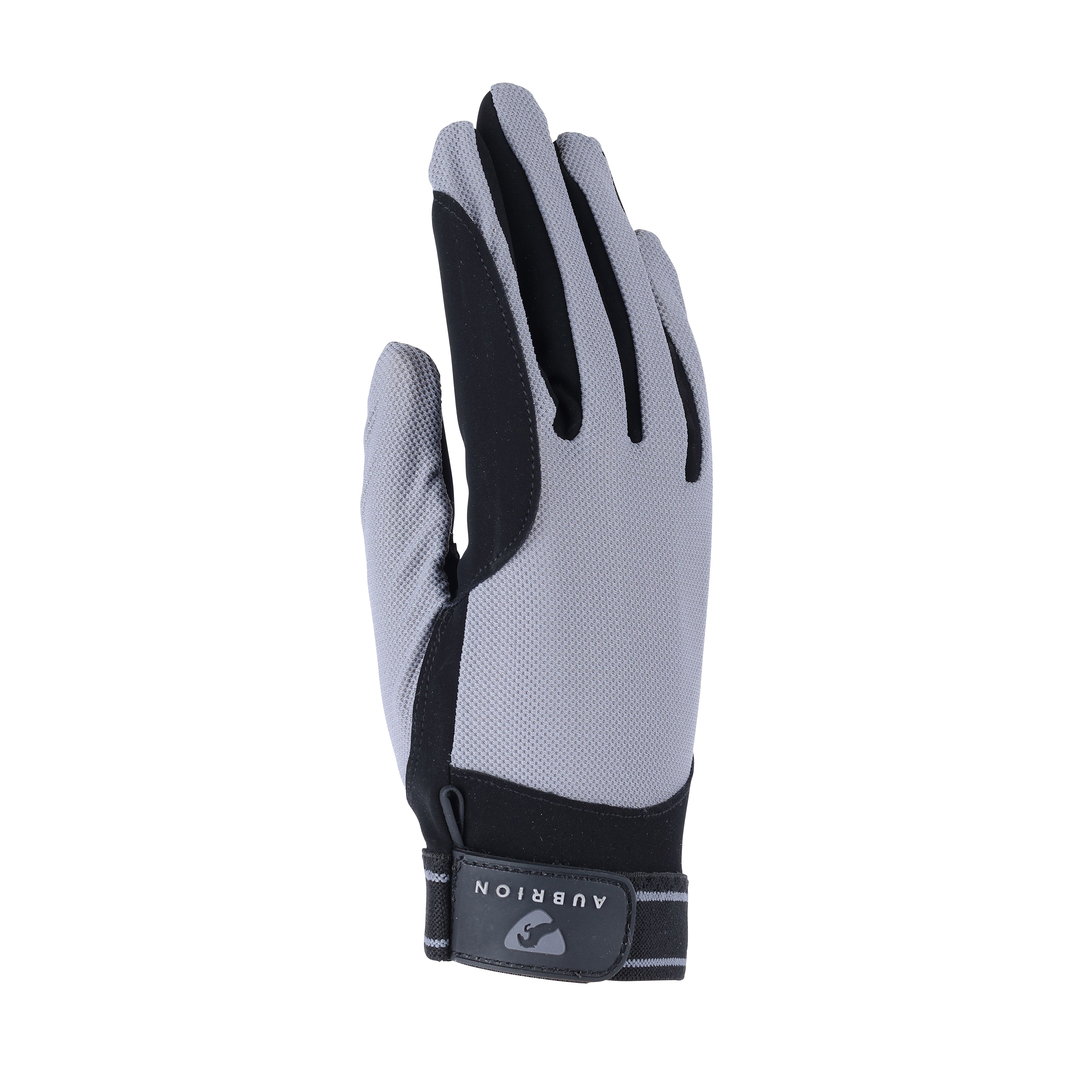 Aubrion Stratos mesh gloves offer the rider a lightweight SportActive fit with essential grip reassurance. Ideal for warmer weather, the open knit back allows airflow to the hands to keep them feeling cool and reduces moisture. The wet or dry Synergy Grip synthetic suede palm and finger reinforcements offer reliable rein holding whatever the weather. touchscreen compatible thumb and forefinger tips for use with smart devices. Well-shaped and stretchy with an articulated thumb for great comfort and fit. Stretch wrist with non-scratch touch close fastenings and Aubrion logo tab. White gloves do not feature touchscreen finger and thumb tips.