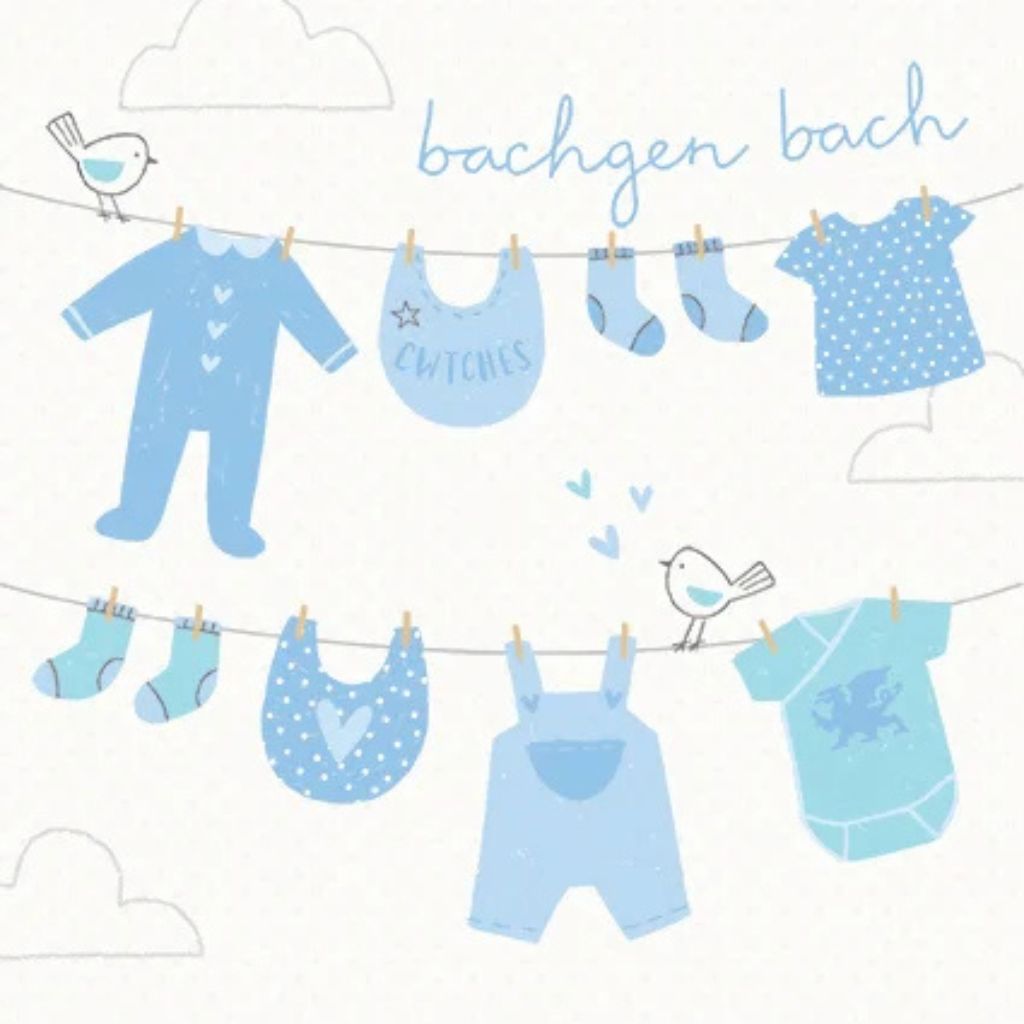 Welsh Language Greeting Card Bachgen Bach 'Baby Boy'.