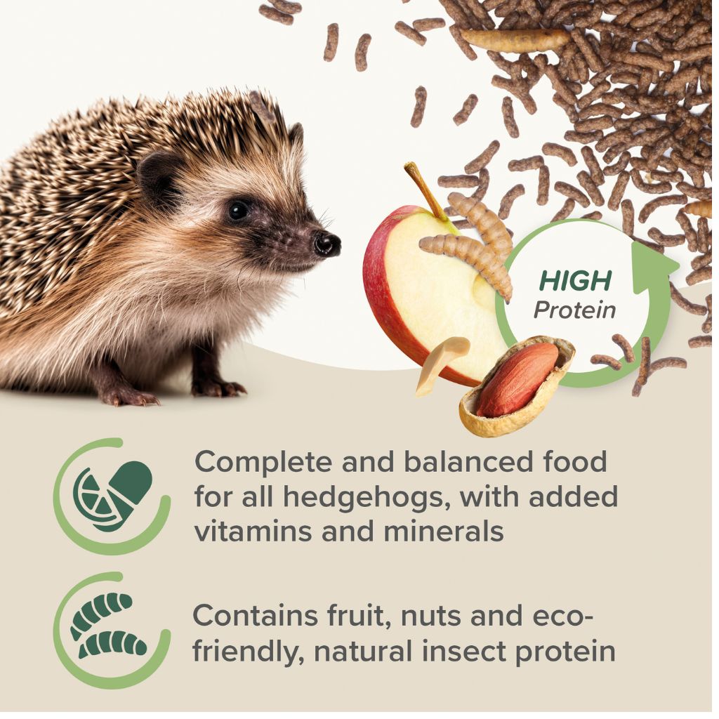 A complete and balanced food for hedgehogs formulated to meet all their nutritional needs. High in protein, with added vitamins and minerals, the high quality recipe contains fruit, nuts and eco-friendly natural insect protein to support health and vitality.