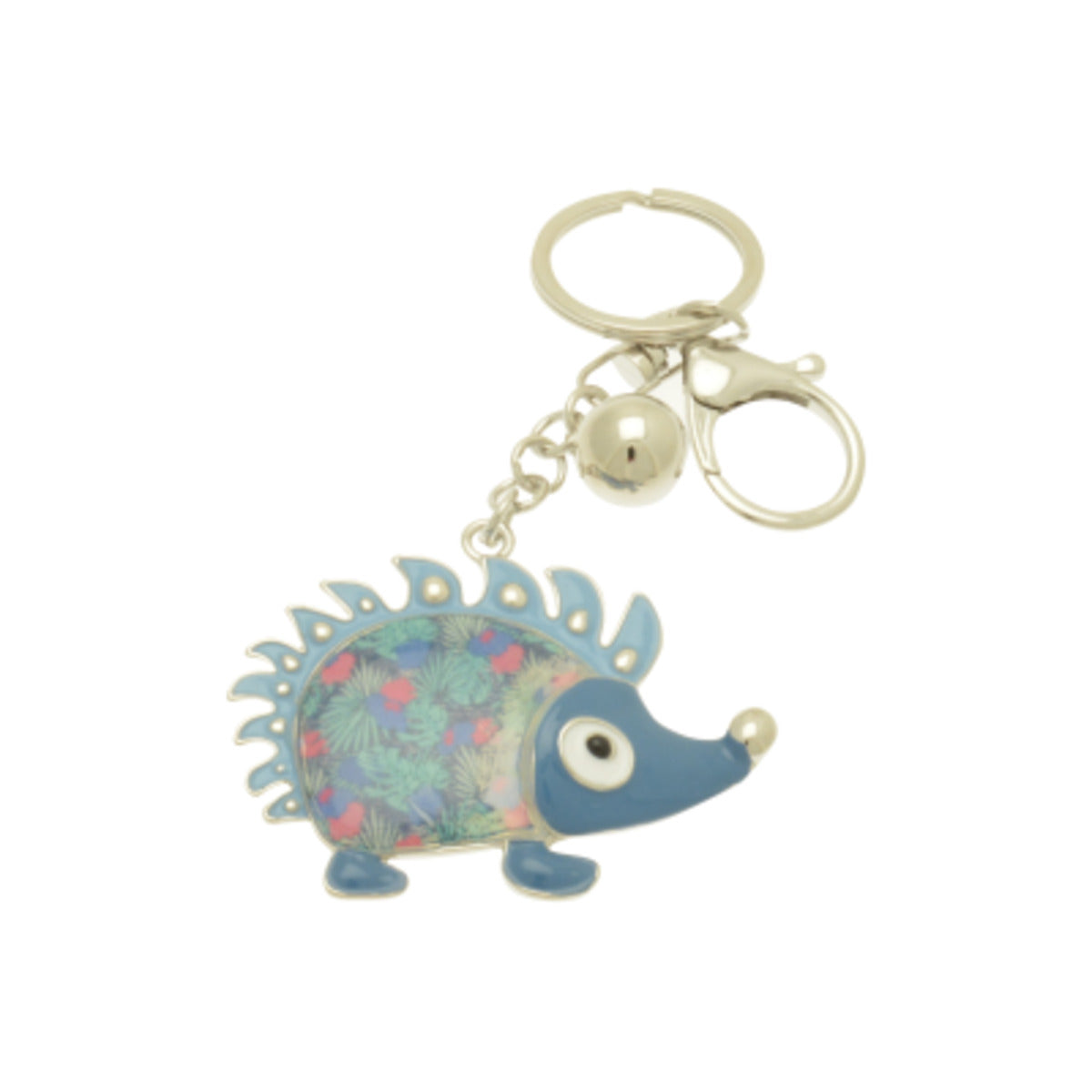 Decorate your keys with this cute blue. pink and green hedgehog looking up at you adoringly. Keyrings also make great bag charms.