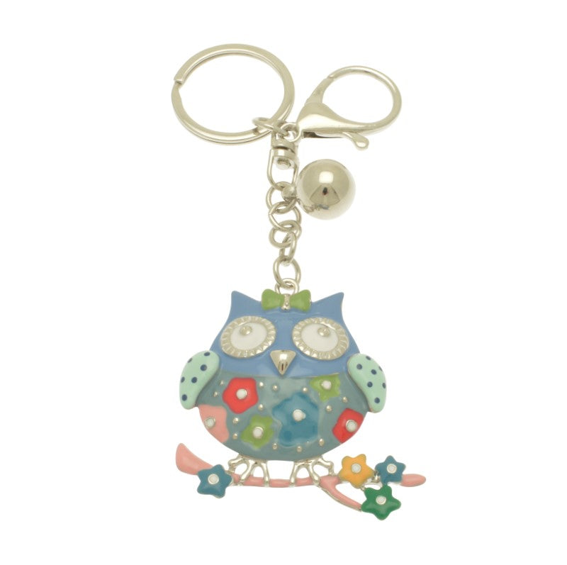 Decorate your keys with this pretty, floral light blue owl keyring. Keyrings also make great bag charms. The owl measures approx 4cm wide by 5cm high.