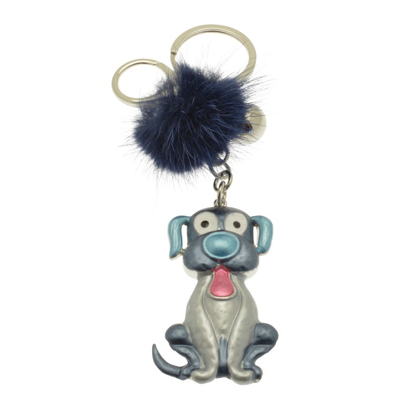 Adorn your keys with this adorable blue dog keyring and co-ordinating fluffy pom pom. Keyrings also make great bag charms. The dog measures approximately 4cm wide by 7cm high.