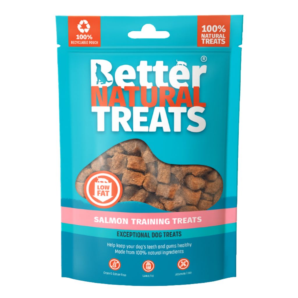 Tasty, low-fat training treats made with 100% natural salmon. These soft, grain-free, and sugar-free bites are perfect for rewarding good behaviour. Healthy, delicious, and with recyclable packaging.