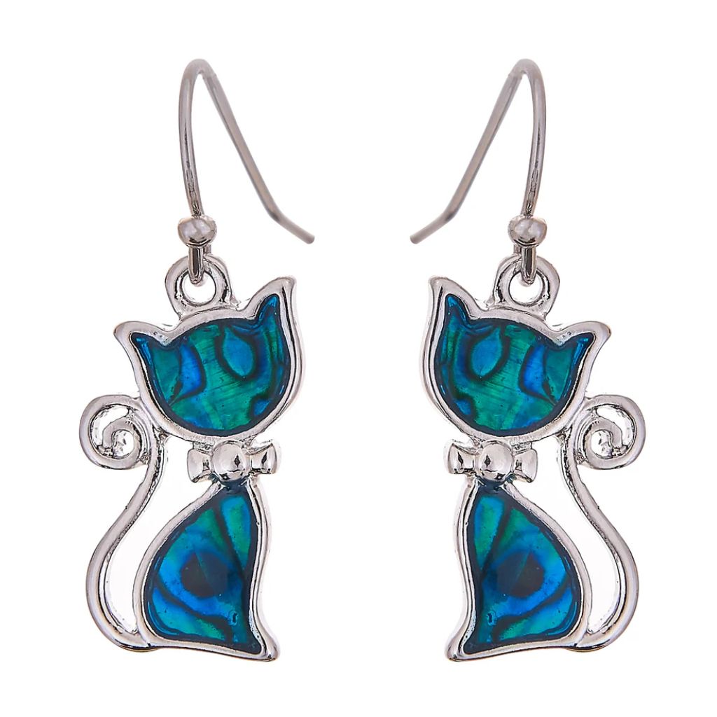 - Natural Paua Shell Pussy Cat Earrings.