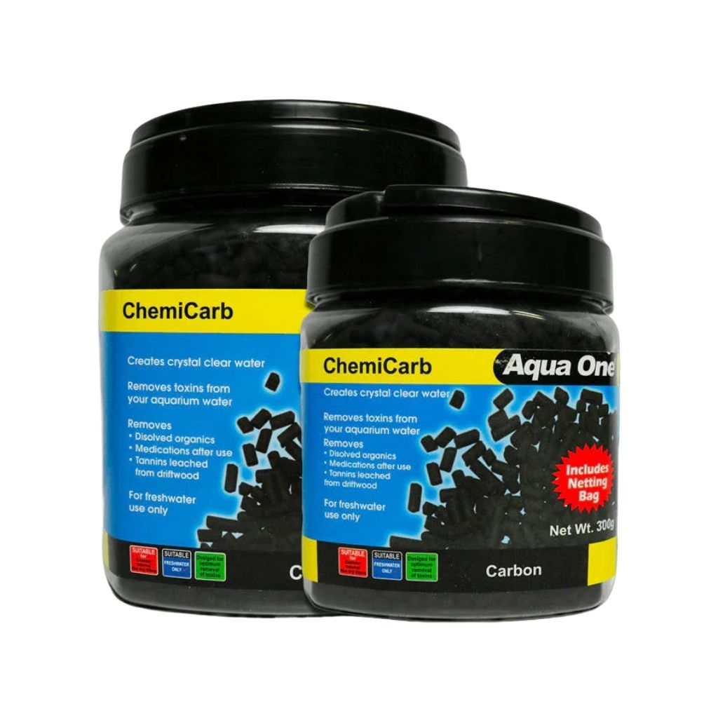 Aqua One ChemiCarb can be used in a large variety of filters, contains no phosphates and is suitable for freshwater use. ChemiCarb has a large surface area which absorbs fine particles which are held in suspension in your aquarium water. Water is passed through the carbon which traps the small particles in its pores.