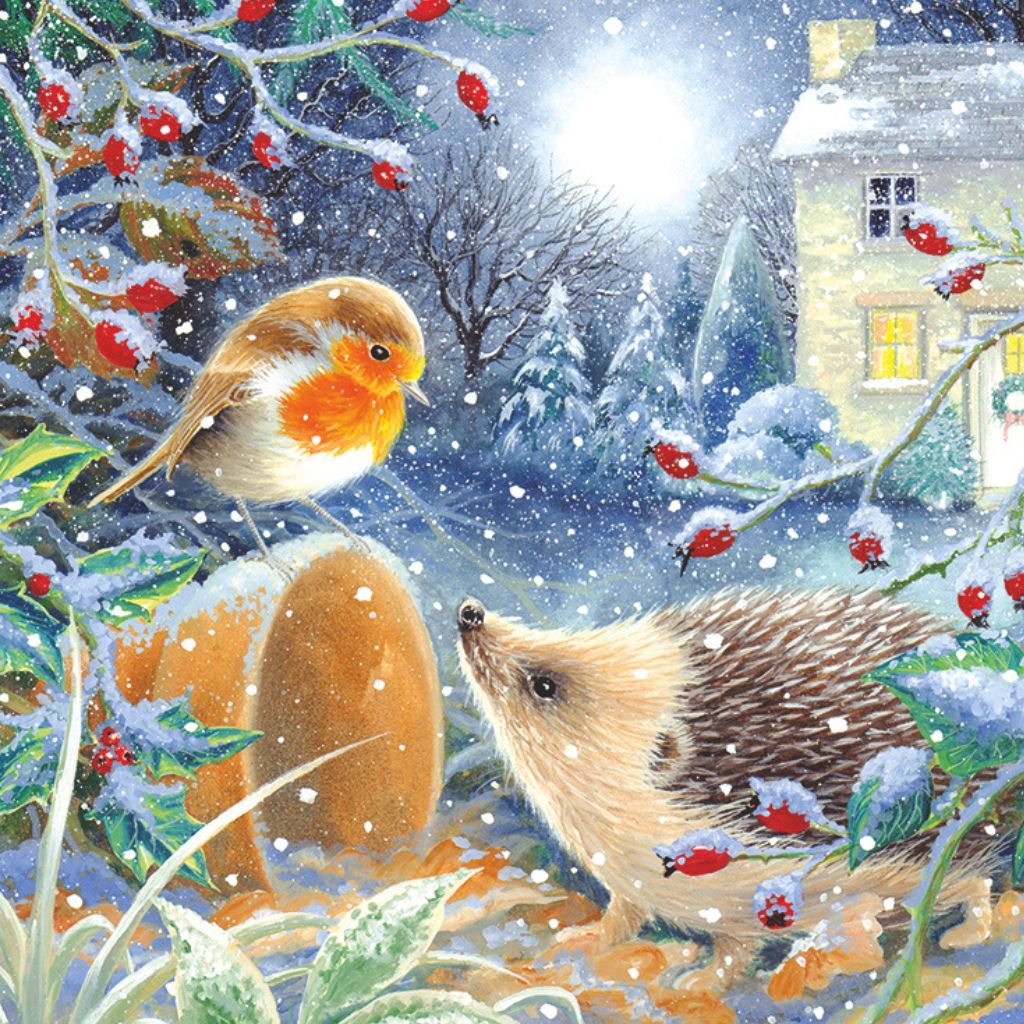 Christmas Traditional Boxed Cards Robin With Hedgehog