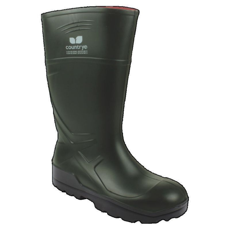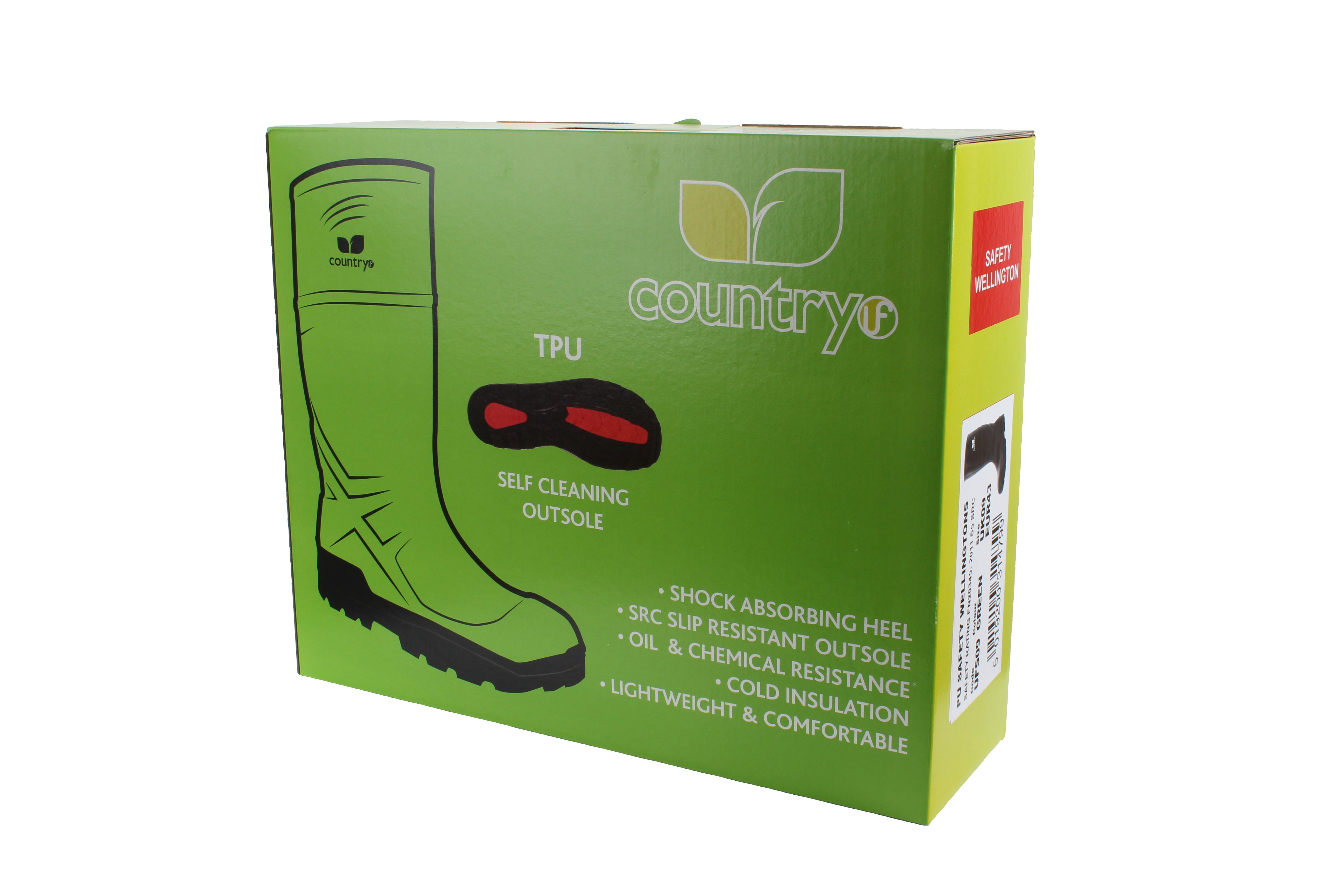 Lightweight and comfortable. TPU outsole. Kick spur for easy removal. Steel toe cap and protective midsole. Heat insulated. Cold resistant. Shock absorbing cushioned heel to reduce foot fatigue. Anti-static, fuel oil and chemical resistant sole