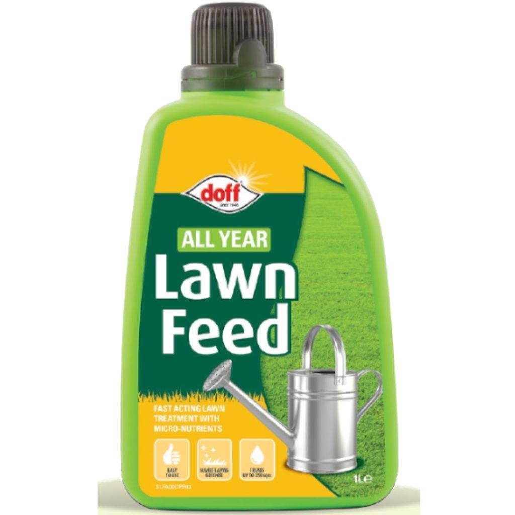 Doff’s All Year Lawn Feed is a top quality liquid lawn feed containing Nitrogen, Phosphorus, Potassium and Iron – all the essential elements for good plant growth. It is formulated in a ratio specifically designed to fertilise grass and if used regularly will help maintain a healthy, green and lush looking lawn. One litre will treat up to 250 m² of lawn.