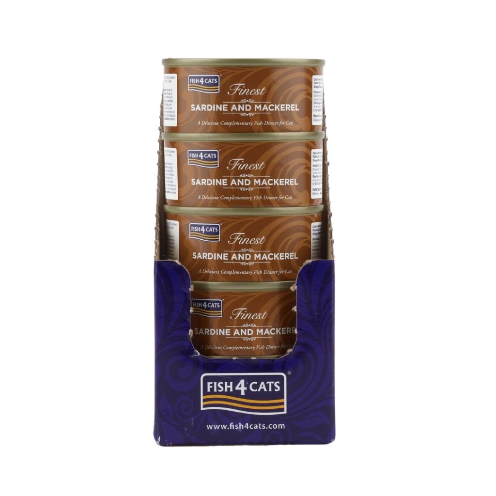 Fish4Cats Finest Sardine and Mackerel is an award winning complementary wet cat food, made with a combination of two varieties of succulent fish and rice and served in a savoury broth, for optimal cat health and vitality.