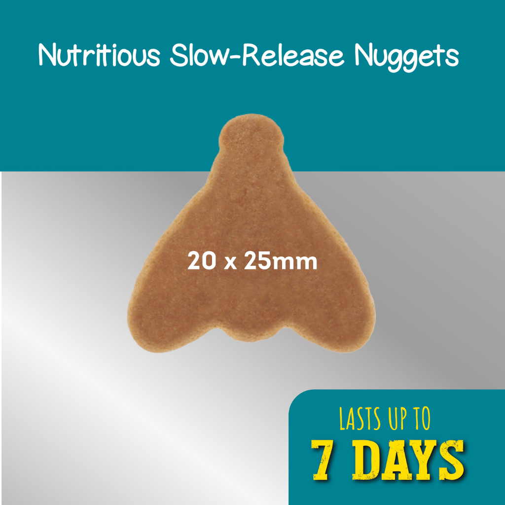 Offered in a convenient, worry-free format, these slow-release nuggets are high in protein and include nutrient-rich Black Soldier Fly Larvae. They also feature a balanced mix of a healthy vitamins and minerals to ensure your fish are well fed while you’re away.