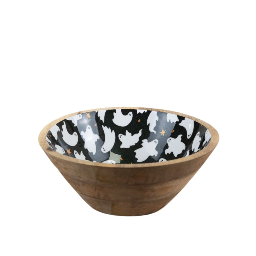 This elegant Ghost Bowl is crafted from premium wood and enamel, boasting a sophisticated monochromatic design of black and white specters.