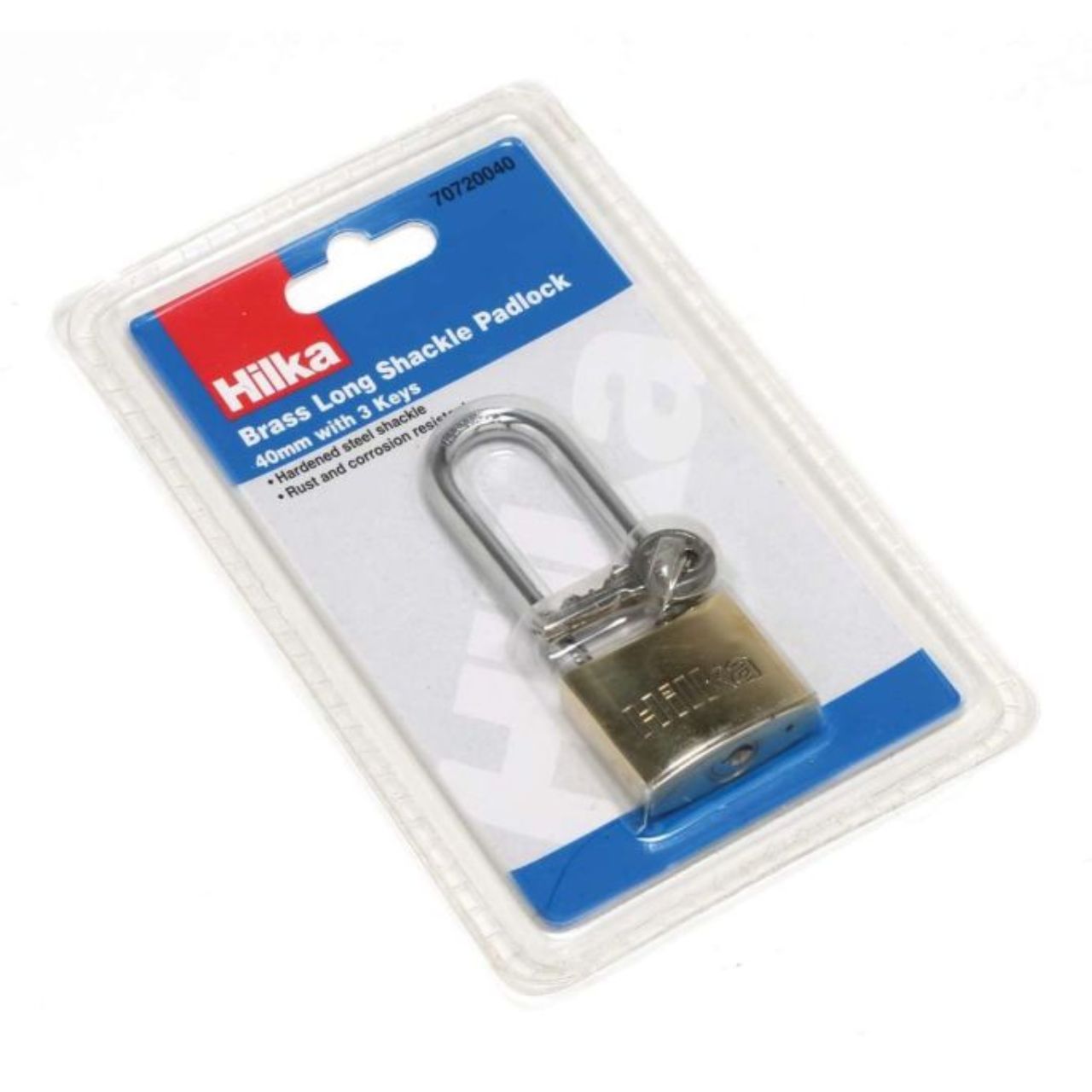 40mm Brass long shackle padlock, solid brass rust and corrosion resistant, fully hardened shackle.