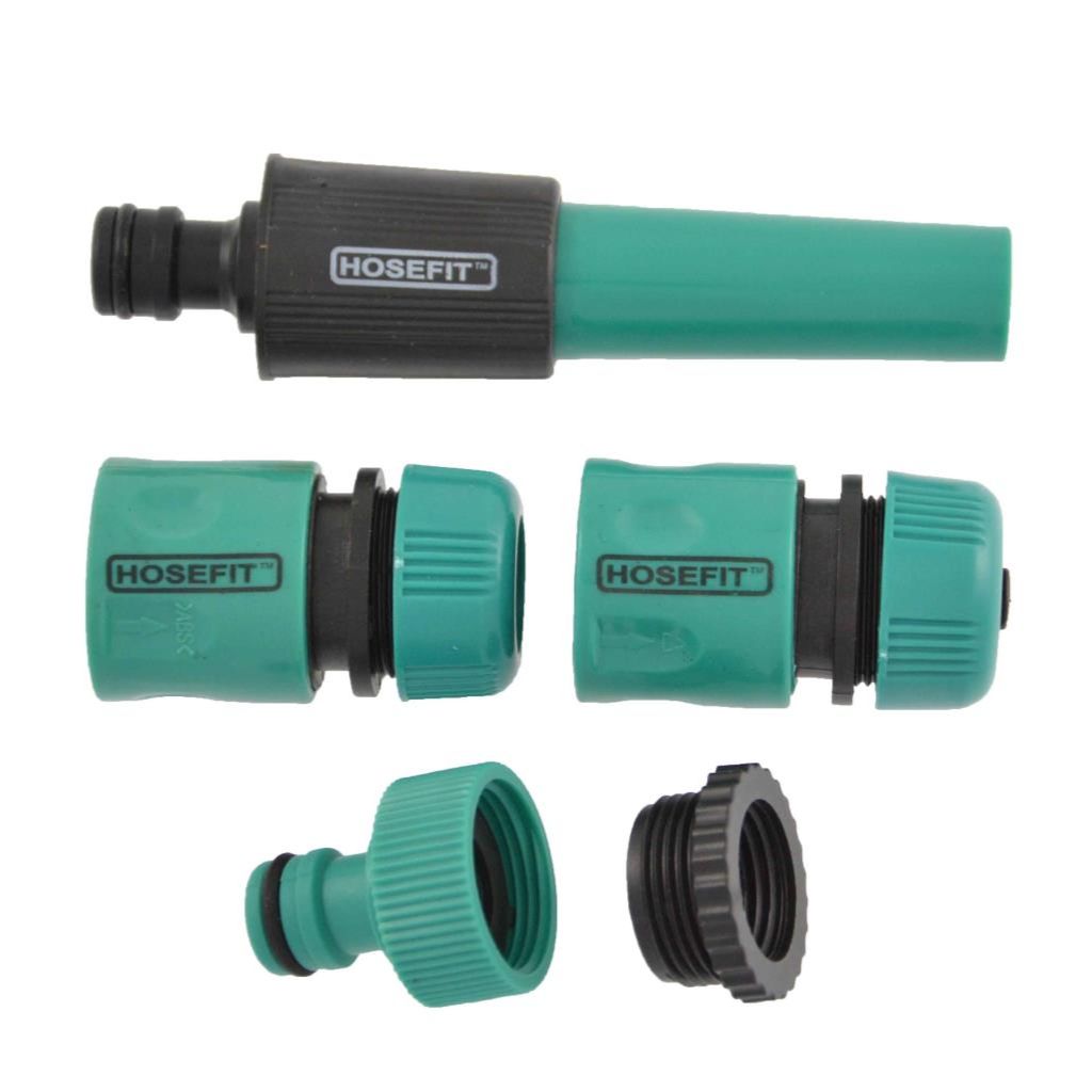 Ideal set for watering your garden.Set contains: 1x adjustable nozzle, 1x female connector, 1x female water stop connector & 1x 1/2" to 3/4" tap adaptor & reducer.Produced from PP & ABS Plastic.All are quick fix & compatible with other leading brands