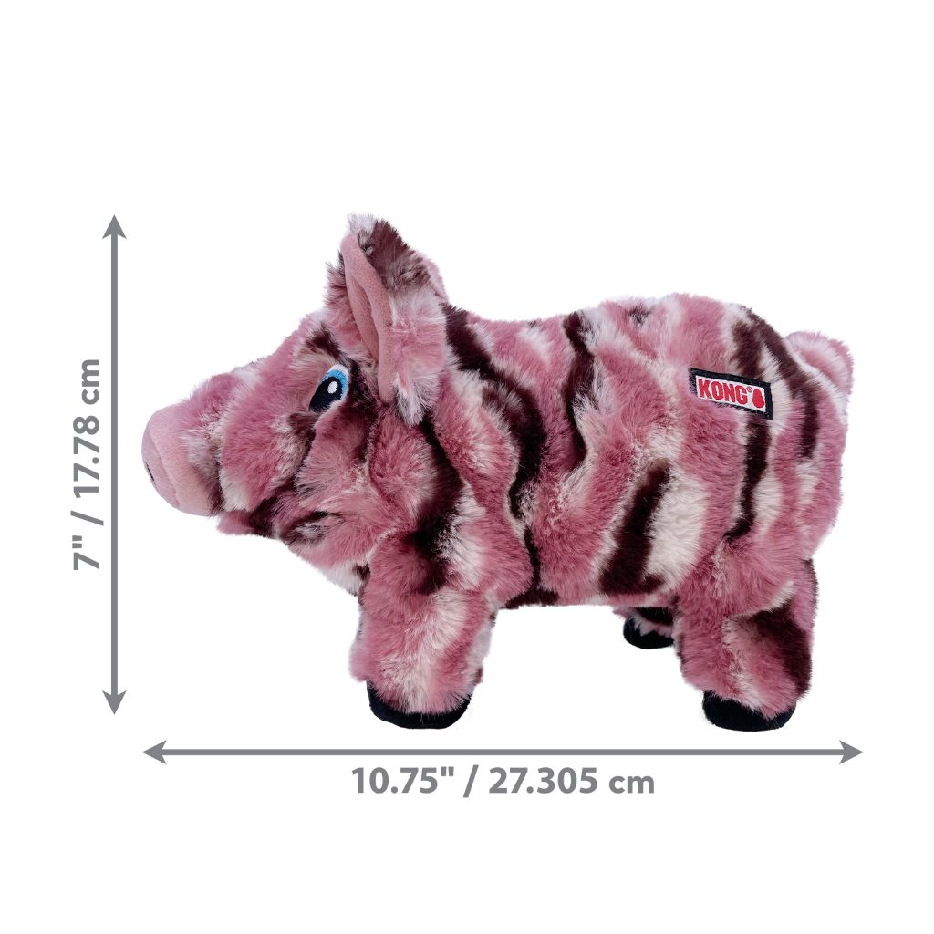 KONG Low Stuff Stripes’ irresistibly soft plush and floppy bodies invite comforting cuddles while the lower tone squeaker keeps dogs engaged. Unique, high-contrast stripes make these barnyard buddies easy to spot and their legs are shaped so that all sizes of dogs can grab them. Minimal stuffing for less mess.