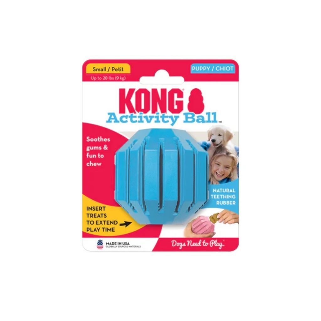 The KONG Puppy Activity Ball supports puppies that are learning appropriate chewing behaviour. Made from the KONG Classic unique puppy rubber, this ball fulfils instinctual needs to chew while easing aching teeth and gums. KONG ridges turn this toy into a fun treat dispensing challenge. Want to extend chew sessions? Stuff with KONG Puppy Snacks and Kong Puppy Easy Treat. Colours and styles may vary, one supplied.