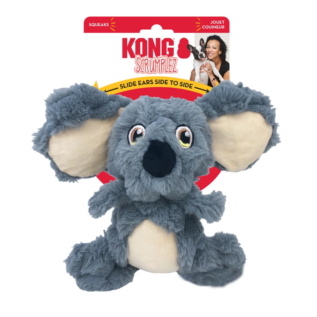 KONG Scrumplez critters delight dogs with ears that slide through their heads to add a surprising dimension to tugging fun. With irresistibly soft plush, these adorable buddies beg to be snuggled between instinct-satisfying bouts of gentle chewing, tugging and fetching. Squeaker prolongs play.