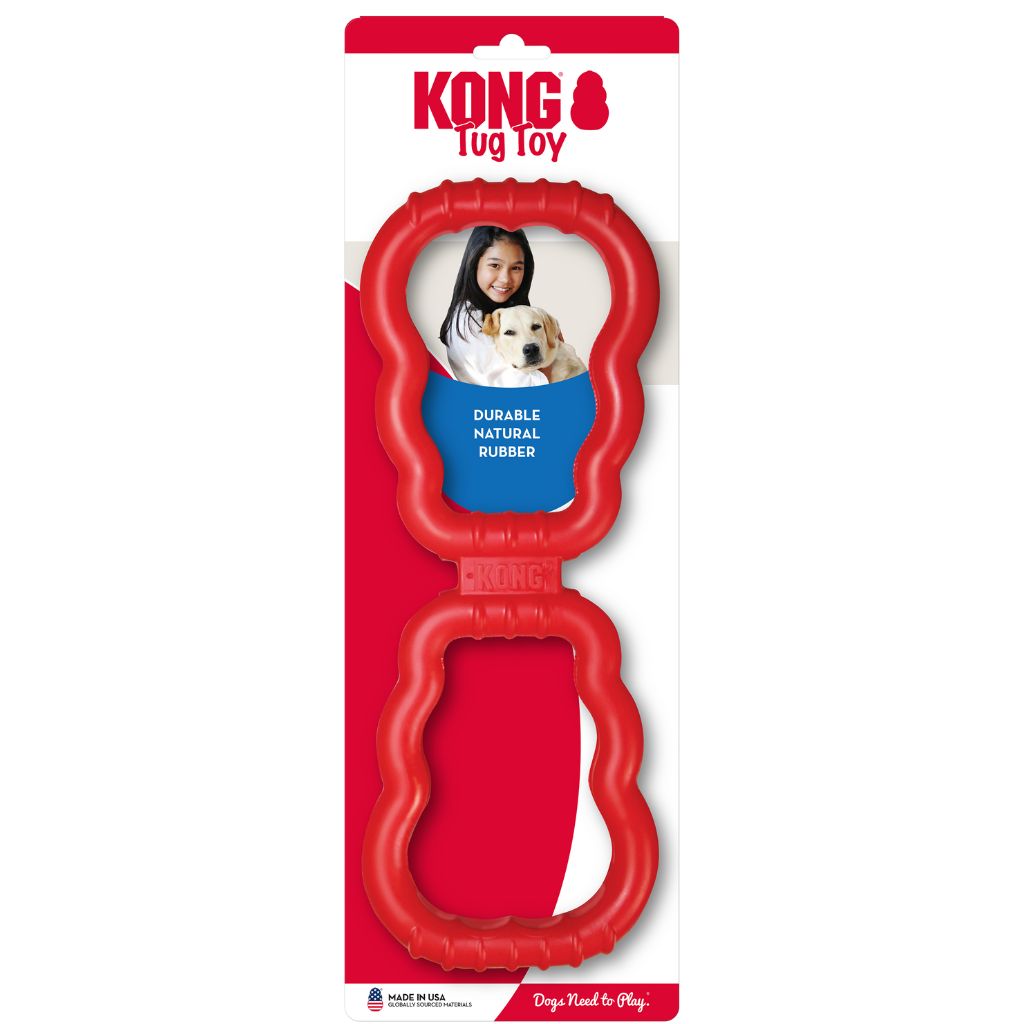 KONG Tug Toy encourages interactive play sessions. The Tug Toy is made with natural KONG rubber, that springs back into shape during a game of tug. The comfortable grips make it easy to keep hold during on-going games of tug.