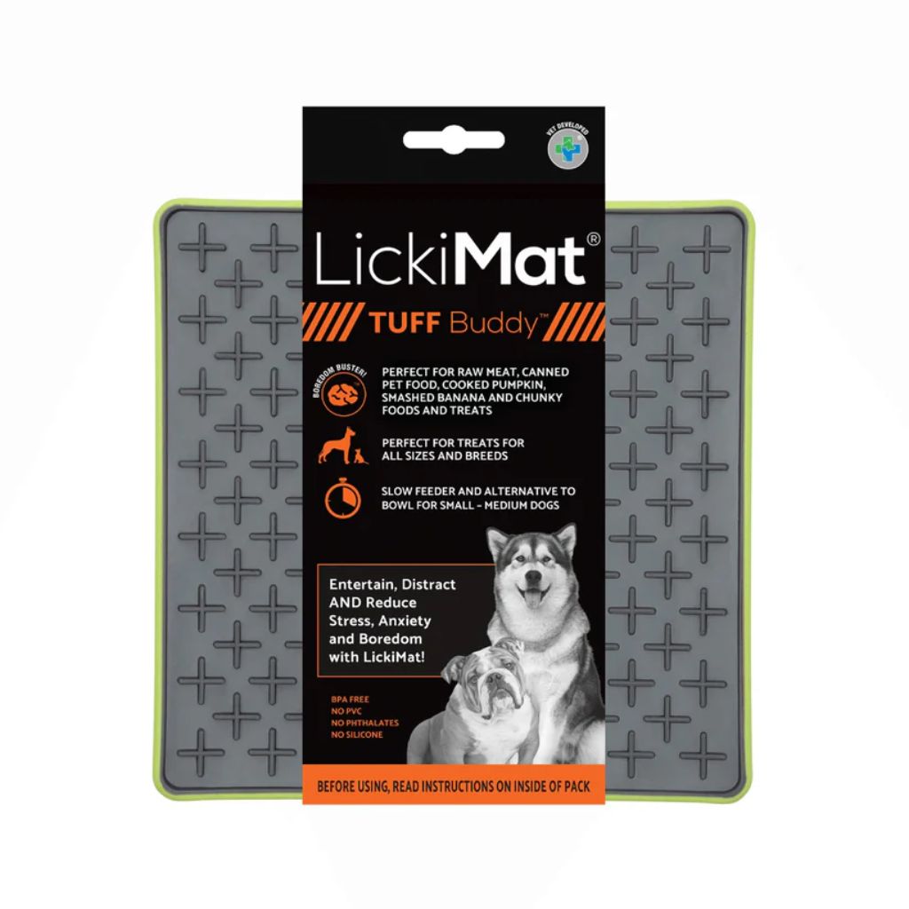 The LickiMat® Tuff Buddy™ – a chew-resistant slow feeder lick mat for dogs.