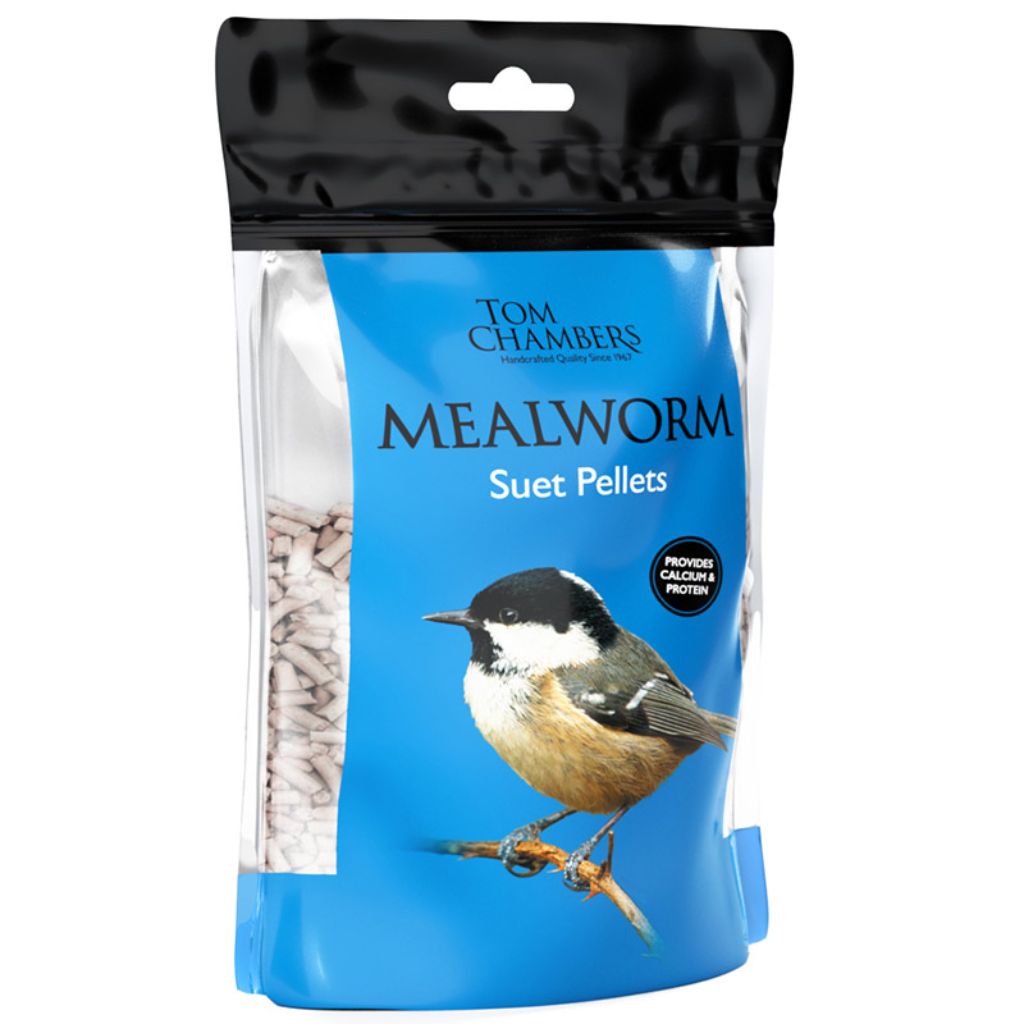 Watch beautiful birds flock to your garden including Blackbirds, Blue Tits, Dunnocks, Great Tits, Sparrows and Robins, as they enjoy this mealworm suet pellet mix from Tom Chambers. Wild birds love the taste and texture in every mealworm pellet, which is packed with nutrients.