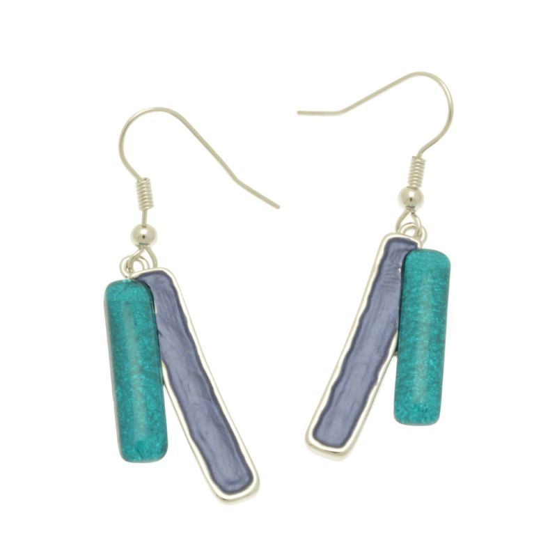 Featuring a strip of turquoise marble resin alongside a cobalt blue painted piece, these attractive earrings are unusual and in a great colour combination. The earrings hang approx 2.8cm from fish hooks.