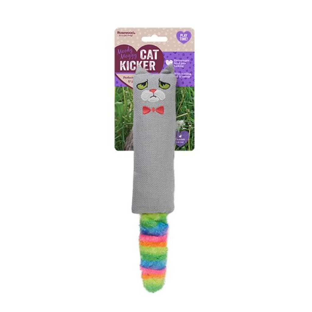 The Moody Moggy Kicker is a long, soft shape which is great to encourage hind paw kicking.