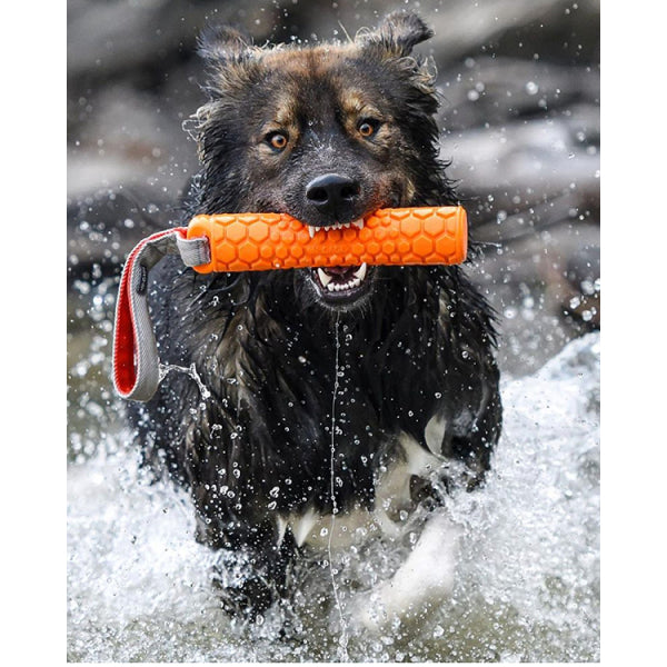 A lightweight, floating trainer dummy with a built-in squeaker and handle. Reflective leash-type handle. Vibrant colour makes it easy to spot from long distances. Foam TPR at 60 Hardness.