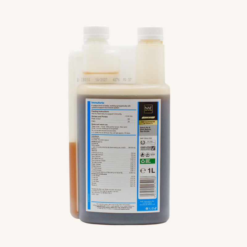Clean Sport: Immuforte Liquid is audited under the BETA NOPS Scheme as suitable for FEI competition. Check local authorities if racing or competing internationally.