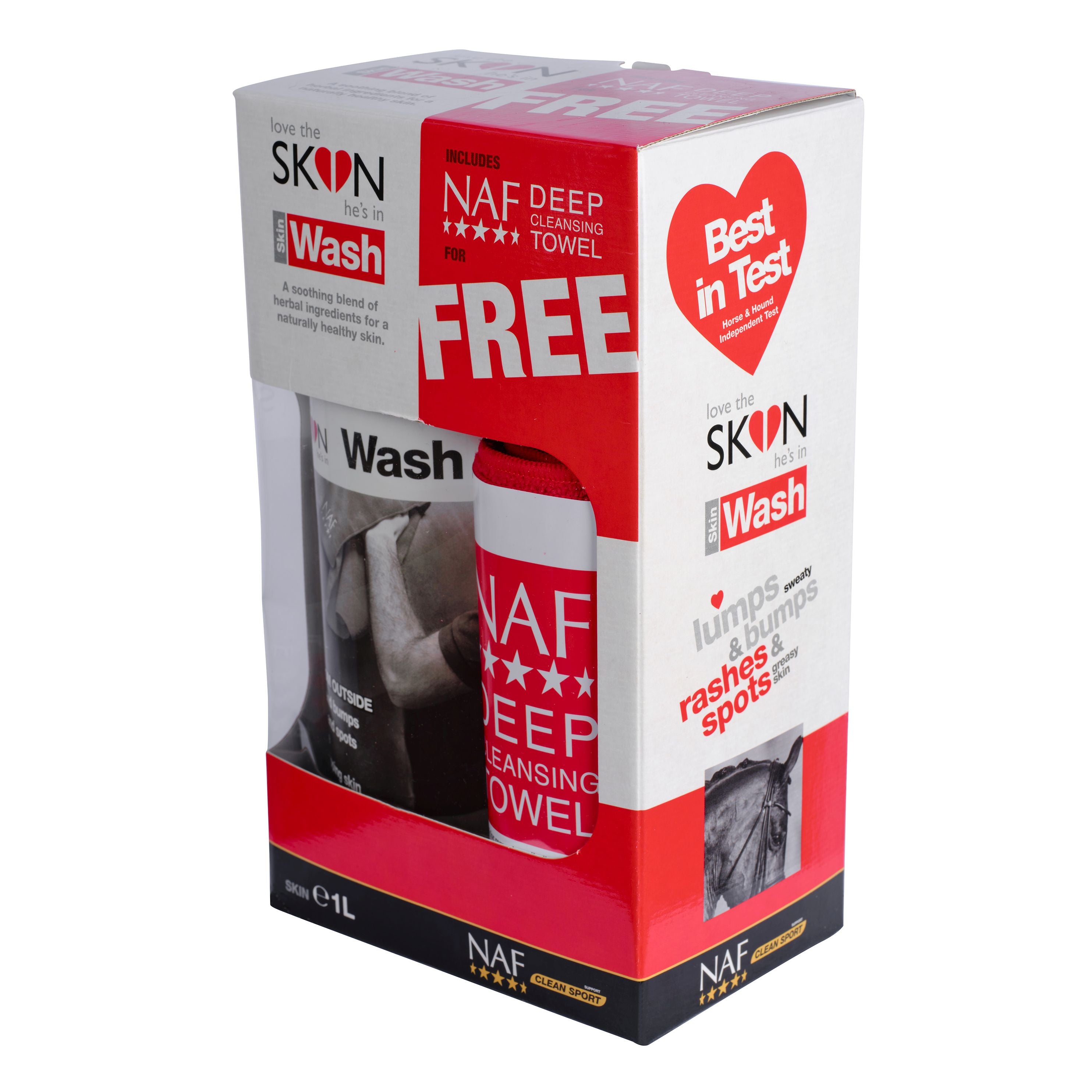 This totally natural skin wash offers the premium skin care your horse's skin deserves. A gentle unique blend of herbal ingredients, including aloe vera, designed to help support damaged or challenged skin affected by lumps, bumps, rashes or mild irritations. This 3-in-1 product provides optimum skin care whichever way you choose to use it on your horse. Suitable as a hot towel wash following clipping or for a deep clean, as a cold wash for a refreshing cleanse to lift sweat, grease and dust from the coat or apply directly to the skin in a concentrated form to address specific areas requiring attention. Every 1lt bottle comes with a free NAF deep cleansing towel.