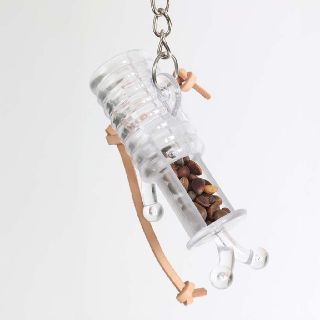 For an easier skill level, only partially turn the chamber. And for added foraging fun, hang several Barrel of Fun toys around your Parrot's cage and hide food in one or all.