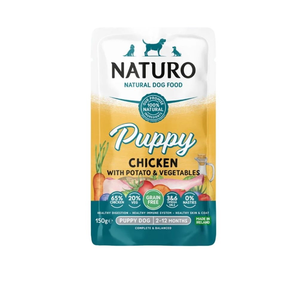 Naturo contains 100% natural ingredients with added vitamins, minerals, and calcium to support your dog’s immune system, teeth, and bones. Our recipe contains no added artificial colours, flavours, or preservatives, providing the best natural, hypoallergenic dog food for your puppy.