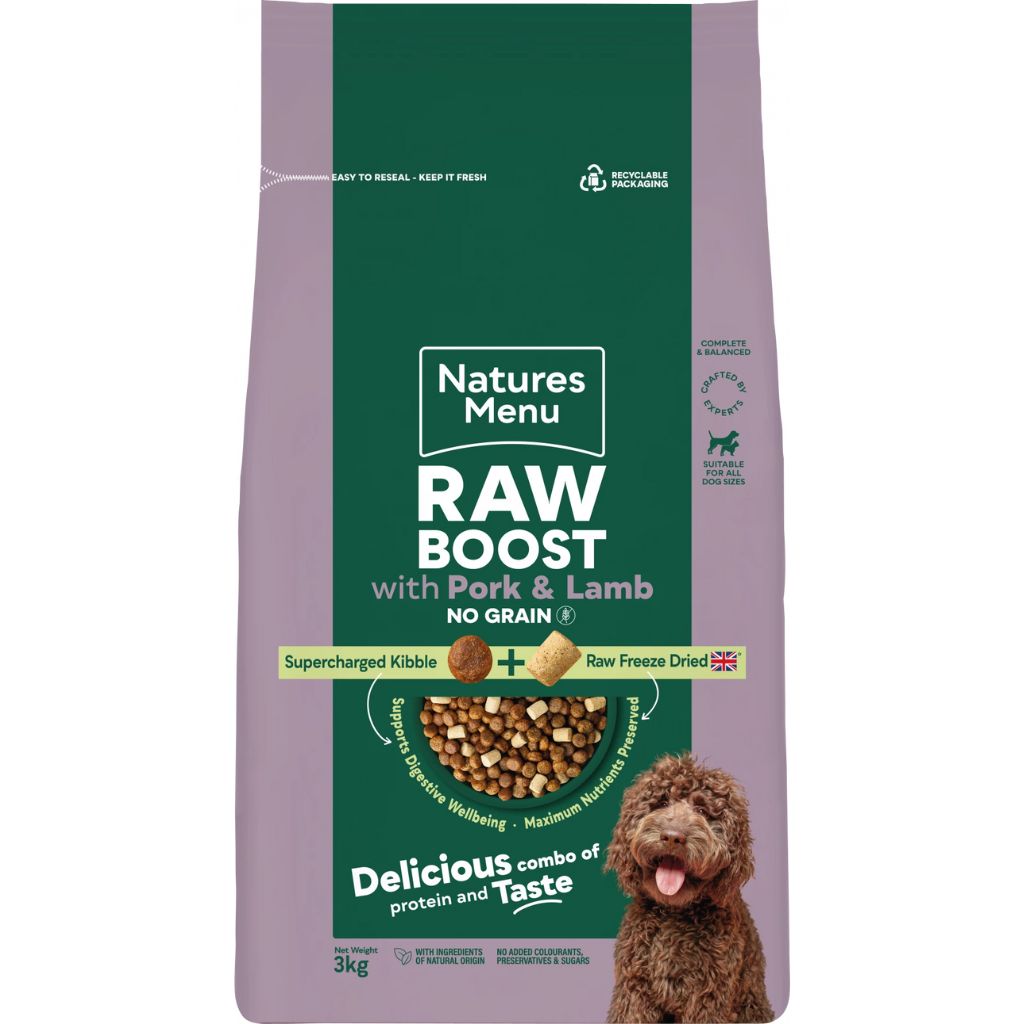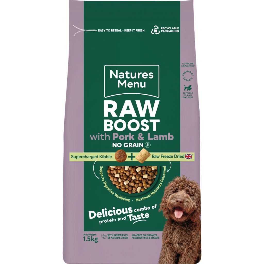 The best of both worlds in every bite! Our new Raw Boost with Pork & Lamb are a delicious combo of raw freeze dried bites packed with high-quality protein, together with crunchy kibble supercharged with prebiotics, vitamins and minerals to support your dog’s wellbeing and vitality. Suitable for sensitive digestion, made with no grain.