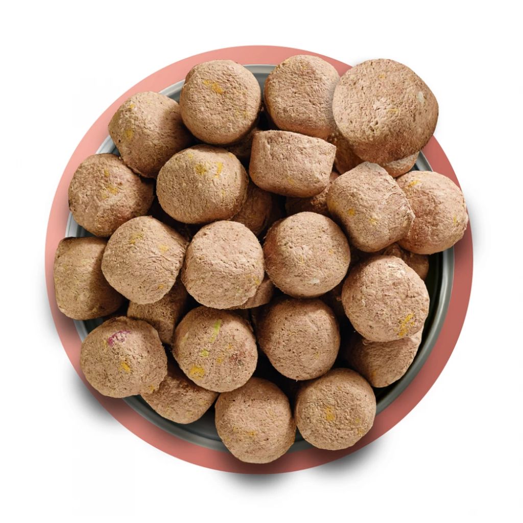 There’s also the peace of mind that all our complete and balanced meals for dogs are made to FEDIAF nutritional guidelines, crafted by our expert team for worry-free natural feeding and mess free mealtimes. Our Freeze Dried nuggets make a delicious meal for all adult dogs.