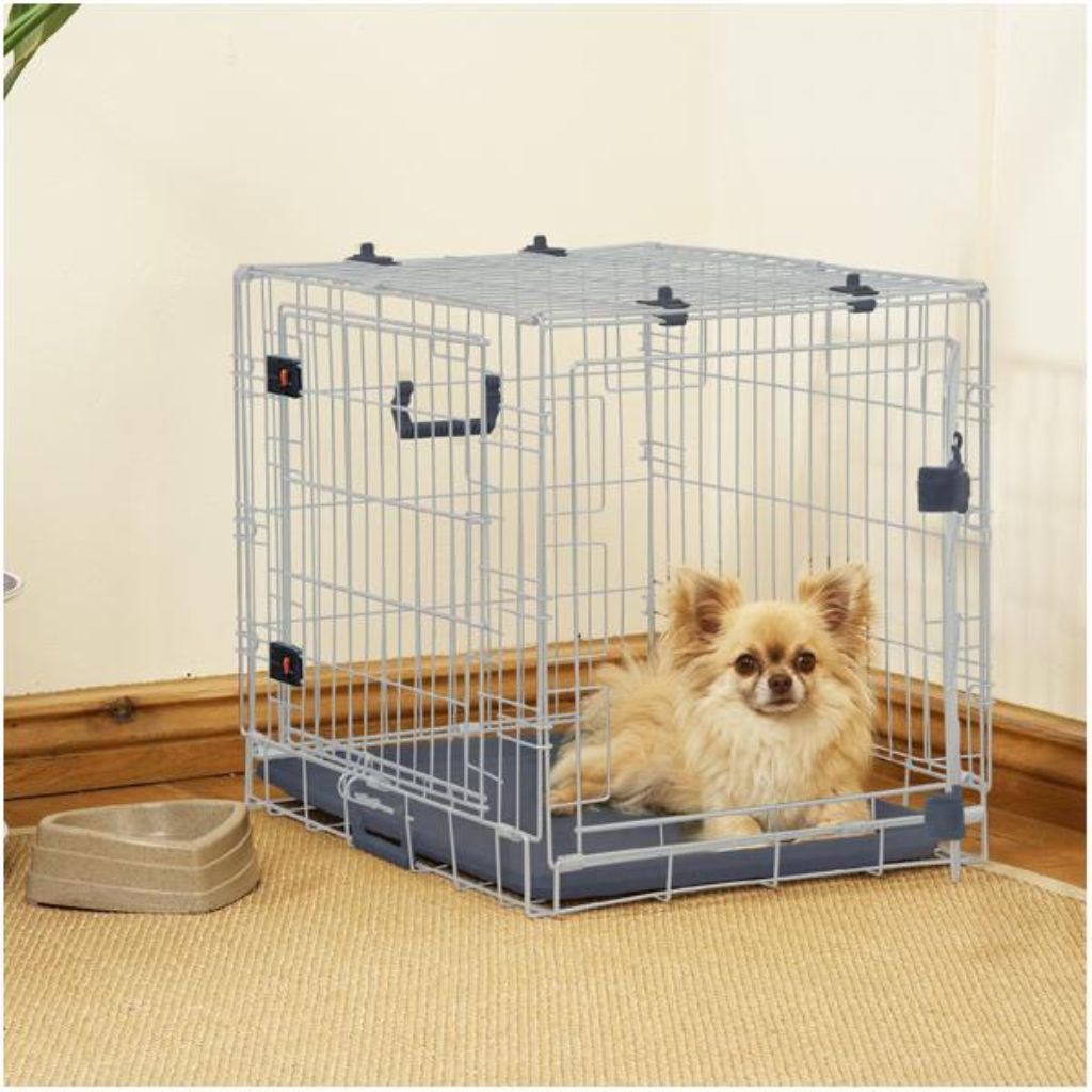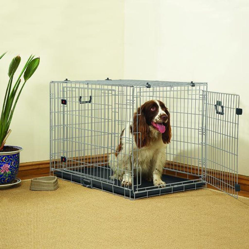 Our Options range of fold flat 2 door dog/puppy homes are available at an attractive price yet there's no compromise on the quality or features that you'd expect in a well-designed carrier from Rosewood. Incorporates unique heavy-duty nylon clips for doors and ends, helping to enable fast and simple assembly by clicking into place. All homes are finished in a practical and stylish silver/grey powder coating. Each home also includes a matching, fully fitted tray.