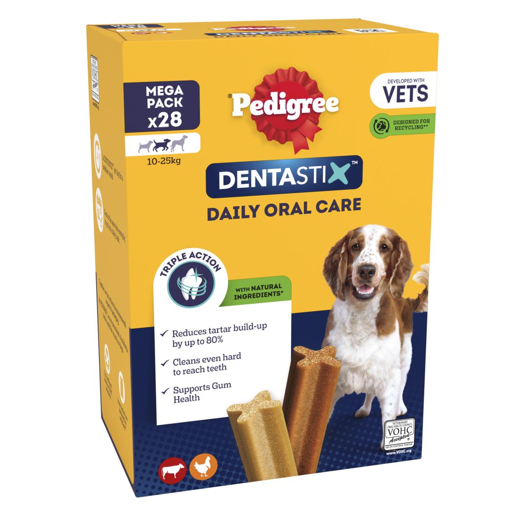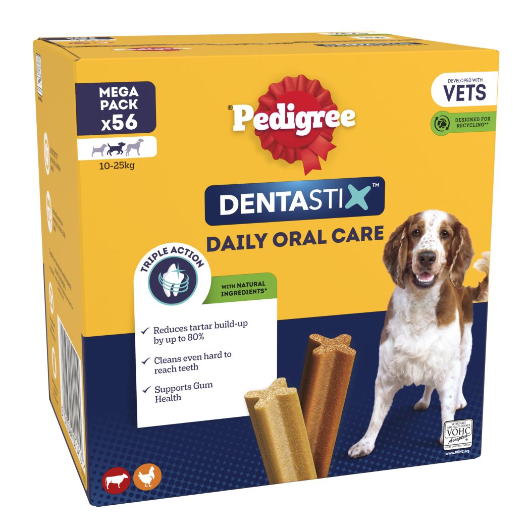 PEDIGREE® Daily DentaStix® has a unique X shape and, when fed daily, the combination of its gently abrasive texture and active ingredients, is scientifically proven to help reduce tartar build-up by up to 80%.