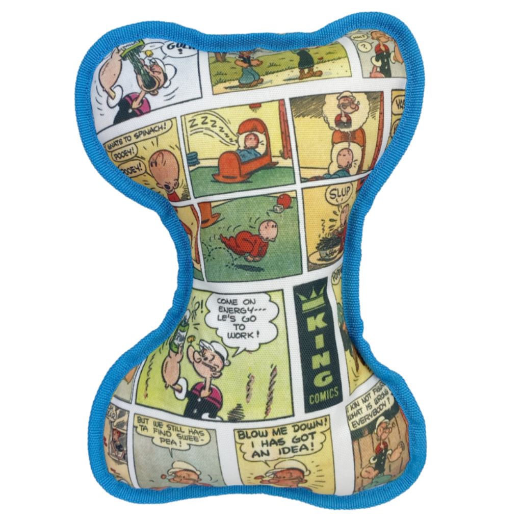 - This plush bone comes in a fun comic book print