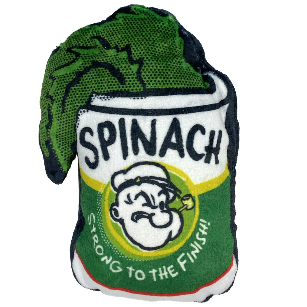 - Plush dog toy in the shape of Popeye's favorite spinach.