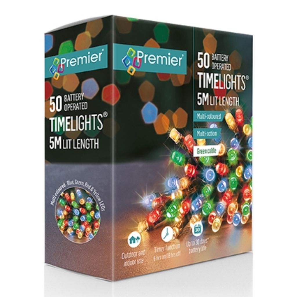 Premier 50 Multi Action Battery Operated LEDs Lights With Timer Multi Colour