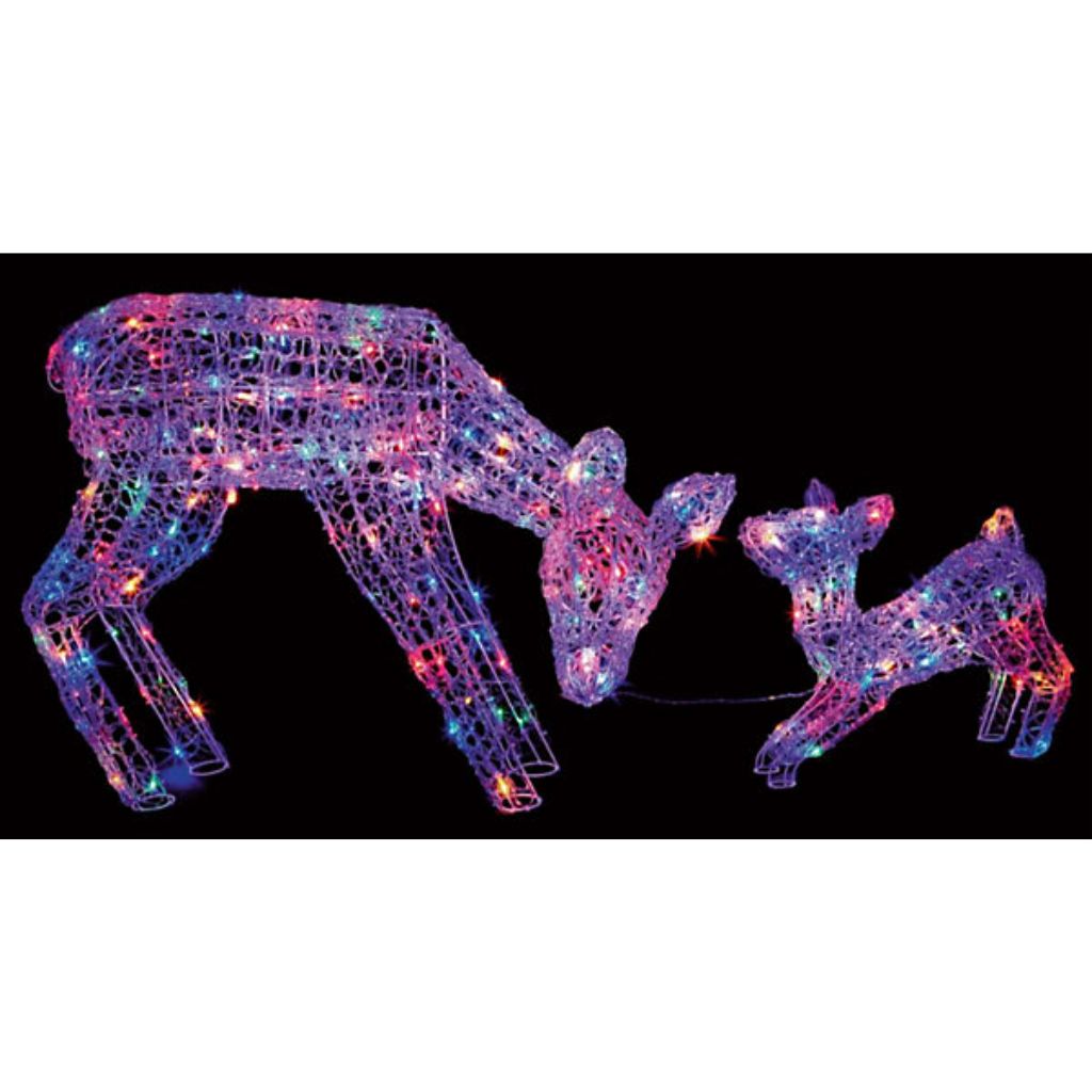 Premier Multi Action Soft Acrylic Mother and Baby Deer With 230 Multi LEDs White