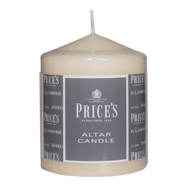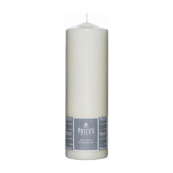 Our unscented solid wax altar candles are made from the highest quality wax to deliver a bright, clean, smokeless and non-drip burn. This off-white pillar candle is perfect for adding glamour to weddings and for lighting up your home and garden.