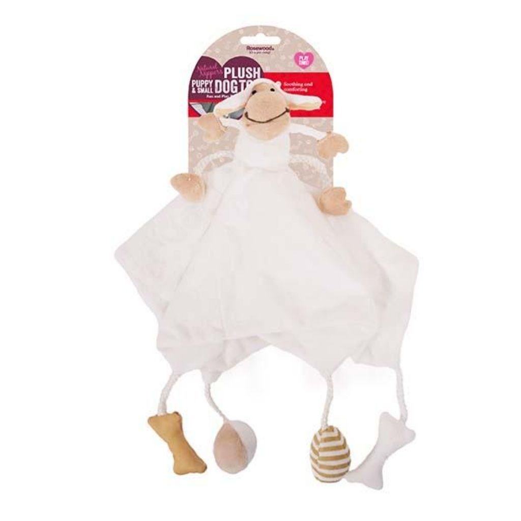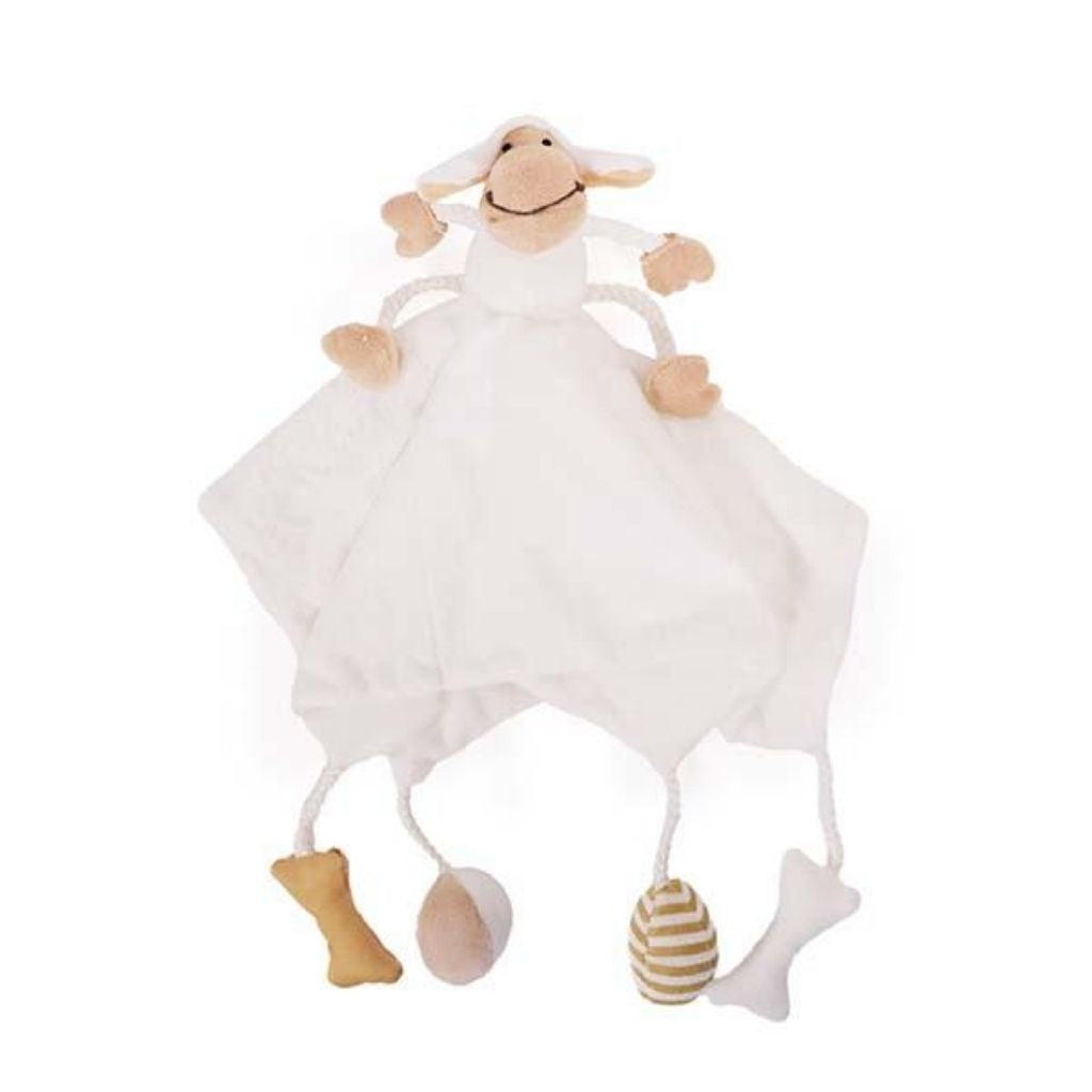 Multi activity blanket. Comfort blanket with hanging plush toys. Size: 32cm/13"