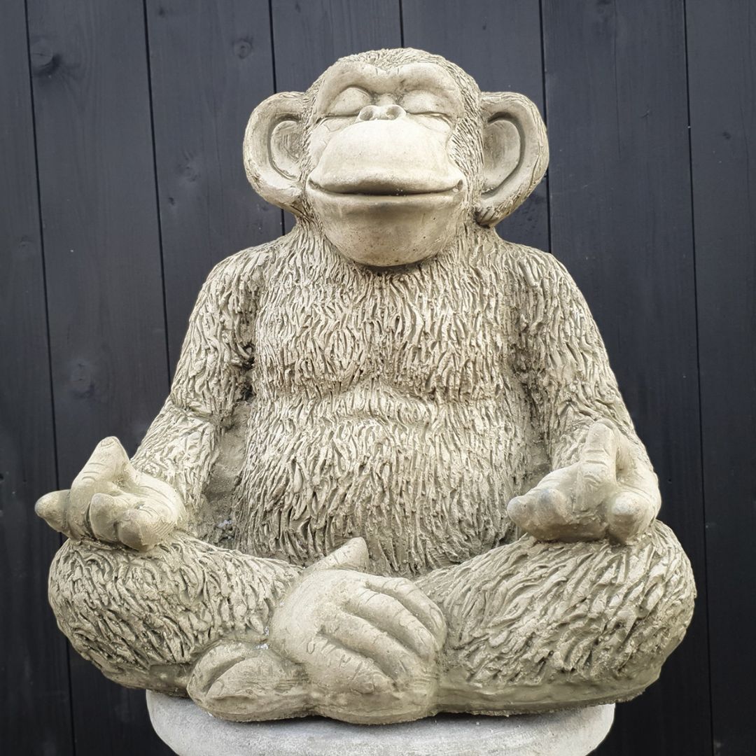 A stoneware garden ornament, modelled as an ape, in our signature antique patina.