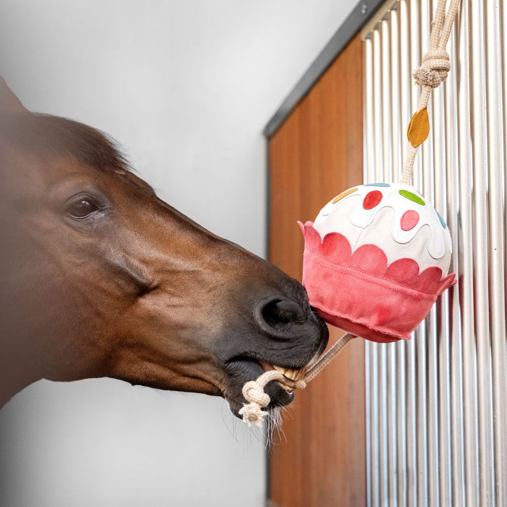 Keep your horse amused in the stable with this colourful 3D cupcake with a candle.
