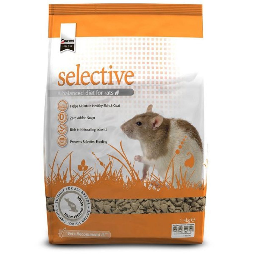 Recommended by vets, a nutritionally complete and balanced diet that perfectly suits rats to help keep them healthy and well. It includes fruits such as apple and blackcurrant for their antioxidant properties and high vitamin content to promote optimum health. It is also high in polyunsaturated fatty acids and low in both saturated fatty acids and cholesterol to assist cardiovascular and circulatory health. Selective is specially formulated to help keep you pet’s skin and coat in great condition.