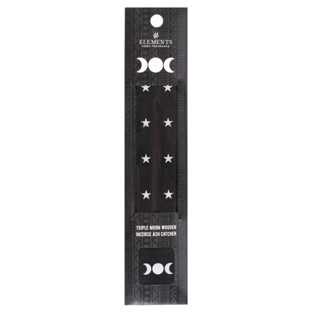 This gothic take on a traditional incense stick ash catcher is made from mango wood and features a printed triple moon design accented by silver stars.