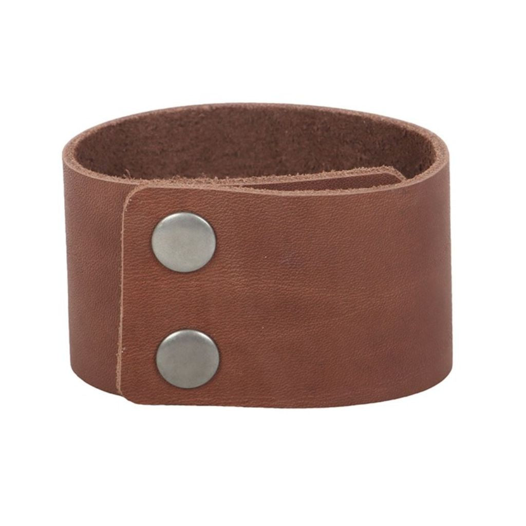 Arm yourself with bold Viking spirit with this leather cuff bracelet, accented with the powerful Vegvisir compass symbol. With sturdy snap closures and a rugged brown finish, it's designed to represent strength and tradition with every wear. Genuine leather.