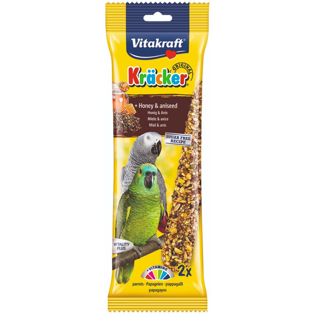 Delicious, nutritious treat sticks for Parrots, the Vitakraft Parrot Kracker Sticks are formulated with premium, select ingredients to ensure optimum nutrition, part of the Vitality Plus range ensuring high quality food and treats for pets.